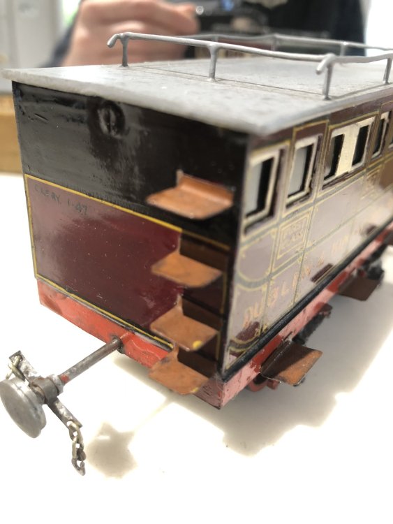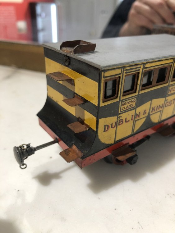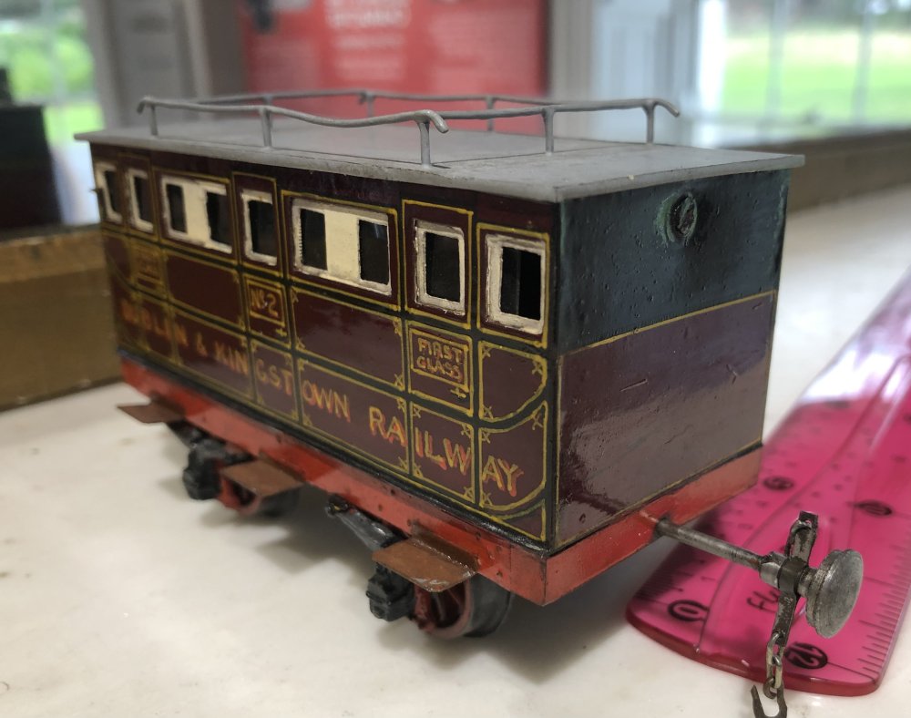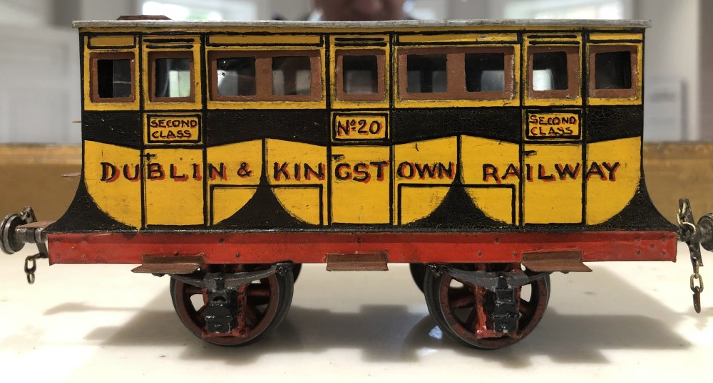 Four wheel coaches, to digress a little, were long gone from almost all Irish lines by around 1900, though the MGWR had some in traffic as late as the early 1920s. These were short, rather than the long-wheelbase ones seen on Ratio kits, or some of the new Hornby "old" carriages. However, the little three-compartment Hornby ones, as sold with "Thomas" sets and the like, while OK length wise, are only appropriate for a layout maybe set in 1880 - for which the coachwork design is too modern. Thus, in an Irish context, even in a reliveried state they are no more like anything that ever ran here as a French TGV is! Similarly, the long-wheelbase four wheelers sold as (very reasonably priced) Ratio (or is it Wills?) plastic kits, would need to be made up as six-wheelers, as none of the railways here ever had long-wheelbase four wheelers at all. (Though, several six-wheelers on, I think, the GSWR, ended up operating with the centre pair of wheels removed!).