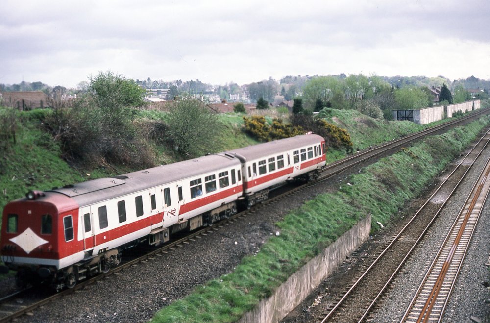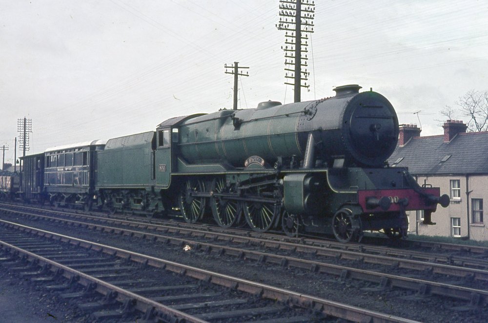 jhb171Senior was in Porteeedown, as 800 passed at snail's pace in the company of the ex-MGWR Dargan Saloon towards the erstwhile Belfast Transport Museum in the early 1960s.