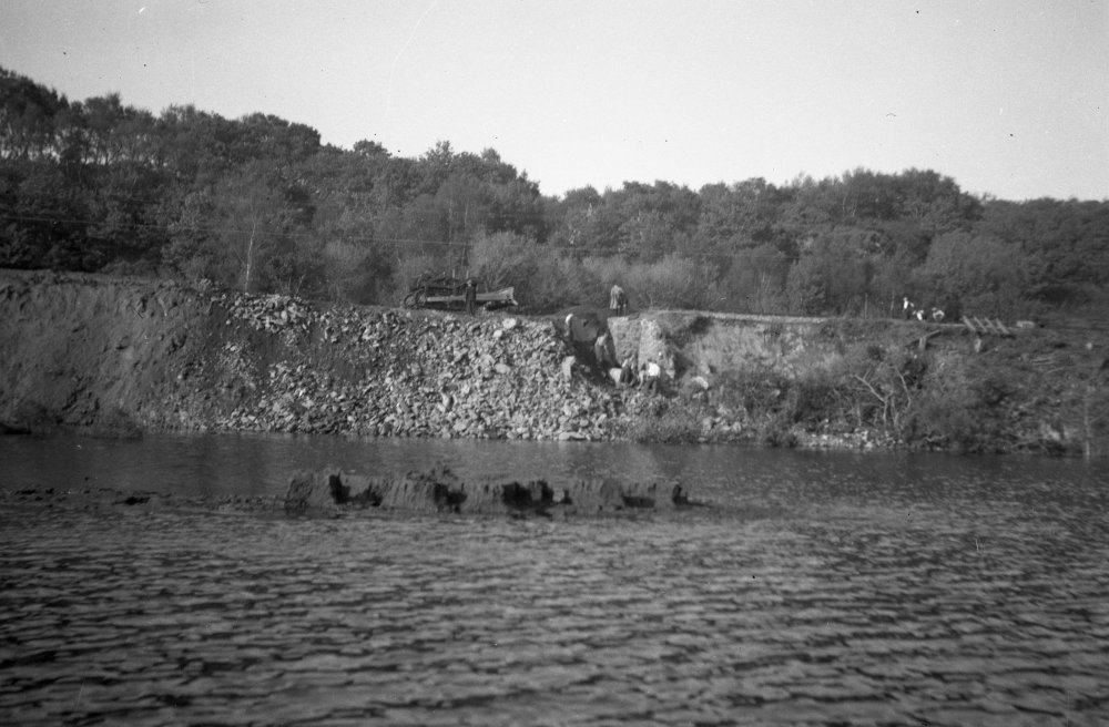 Aerial view of Dugort Harbour tonight, with tomorrow morning’s mixed ready to go; an extra coach on market day. ………… CIE have agreed to present No. 800 “Maedb” to the Belfast Transport Museum. It was stored briefly at Thurles prior to going north, but who knew it also spent a short time at Dugort Harbour? The guy whose idea it was to send it down here was committed to the Home for the Bewildered after it hit its second bridge and came off the road for the seventh time. Here, watched by locals, railwaymen, rubber-neckers and gricers alike, it is shunted down to the loco road.