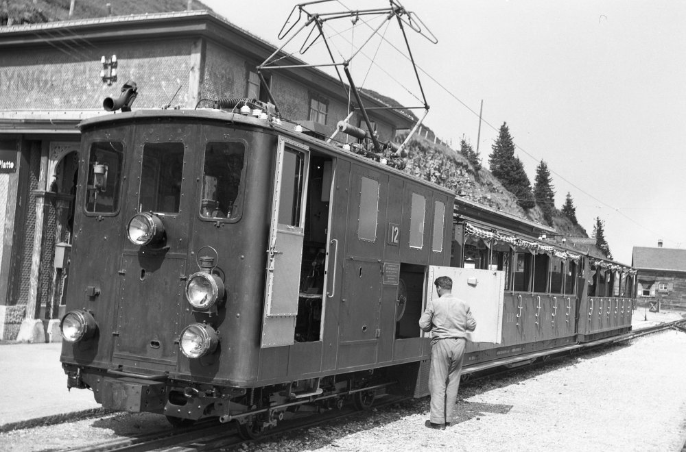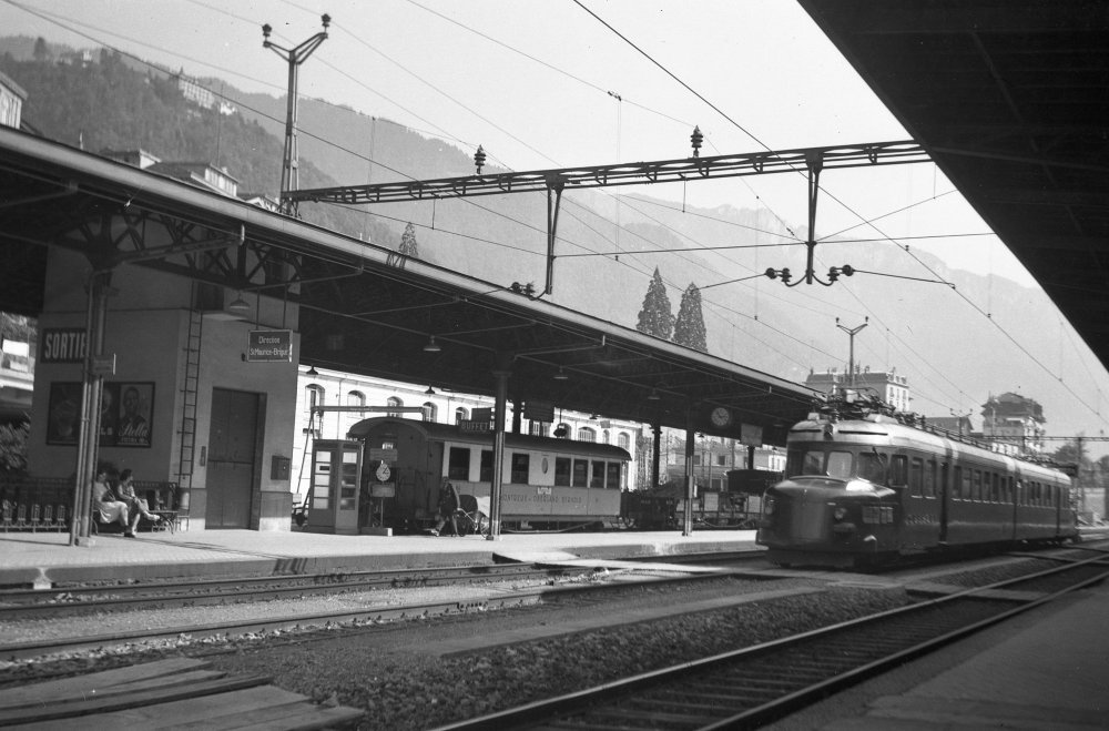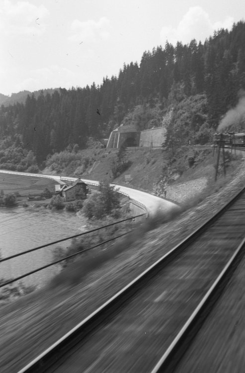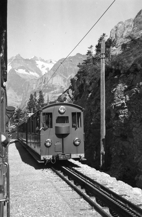 I'm wandering off topic in that while the above is "from the catacombs", it's not Irish! So, to ease us back home, here's one taken in Switzerland and one in Ireland. The Swiss one is 1956, as Senior was on his Funnymoon. That's a serious looking electric loco..... I remember seeing an elderly one something like that, with "steam"-era wheels and connecting rods, in Austria in 1979..... funny to hear it clanking past but no steam or smoke. The Irish one is one of Cyril Fry's (this particular one c. Hassard Stacpoole), and is the mixed train at Cahirciveen, about to depart for Farranfore. It is this type of scene that I will eventually want to emulate on "Dugort Harbour" once IRM get the "C" classes out! That MGWR Cusack-era six-wheeler is a long way from home.