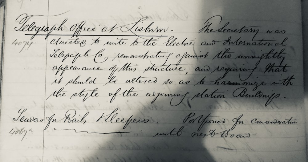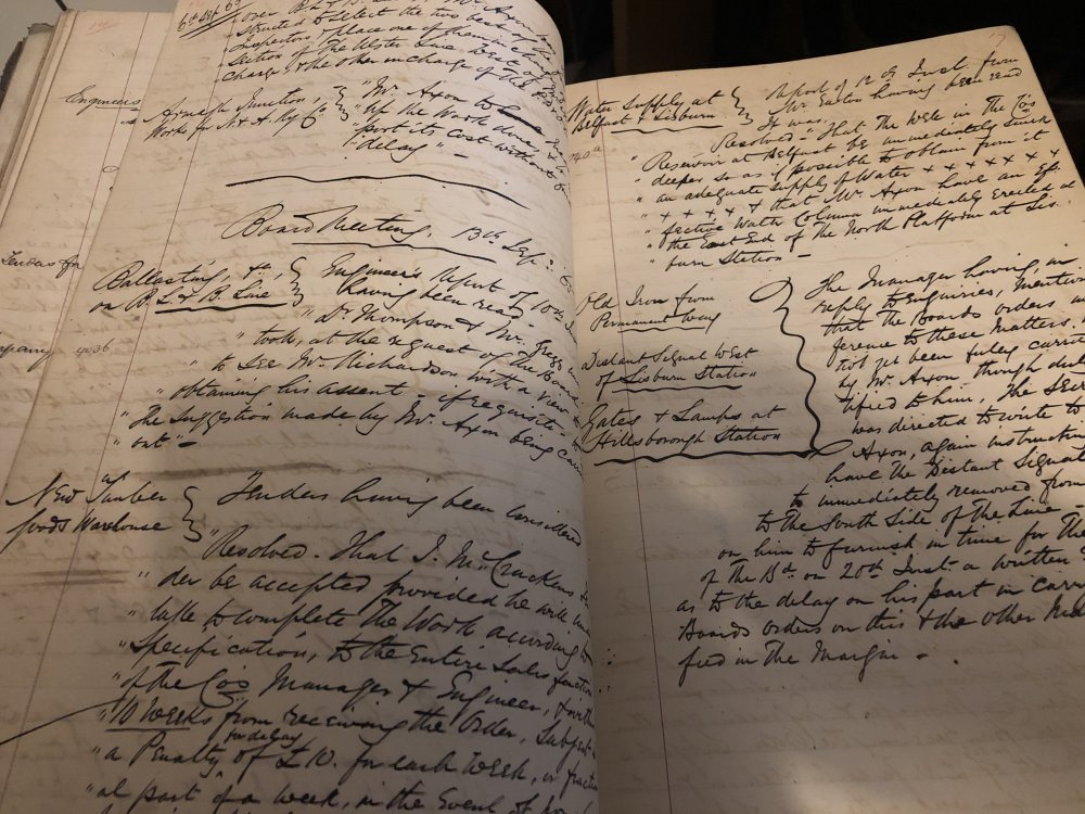 Ulster Railway, 1865 Engineer’s minute books. I like the way these old volumes are bound.... Many of those who wrote these book up had, as others have mentioned, a very neat and stylish type of writing. As you can see here, there were certainly some exceptions of barely legible scrawl (see last pic!)...