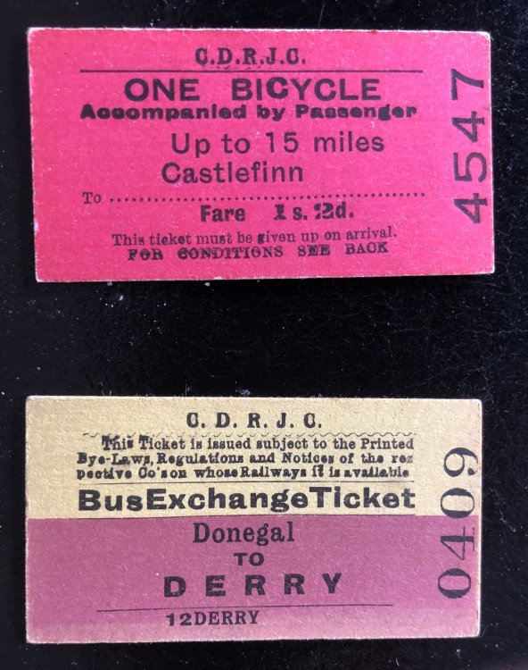 13. Nooooo, no photos from this day either! To Strabane by the CDR line..... Larne Harbour to Strabane AND BACK..... I wish I had more information about this outing. The ticket is undated but given what I know of his travels probably mid 1940s. "First Class", my eye! If possible, he'll have been in the cab.....