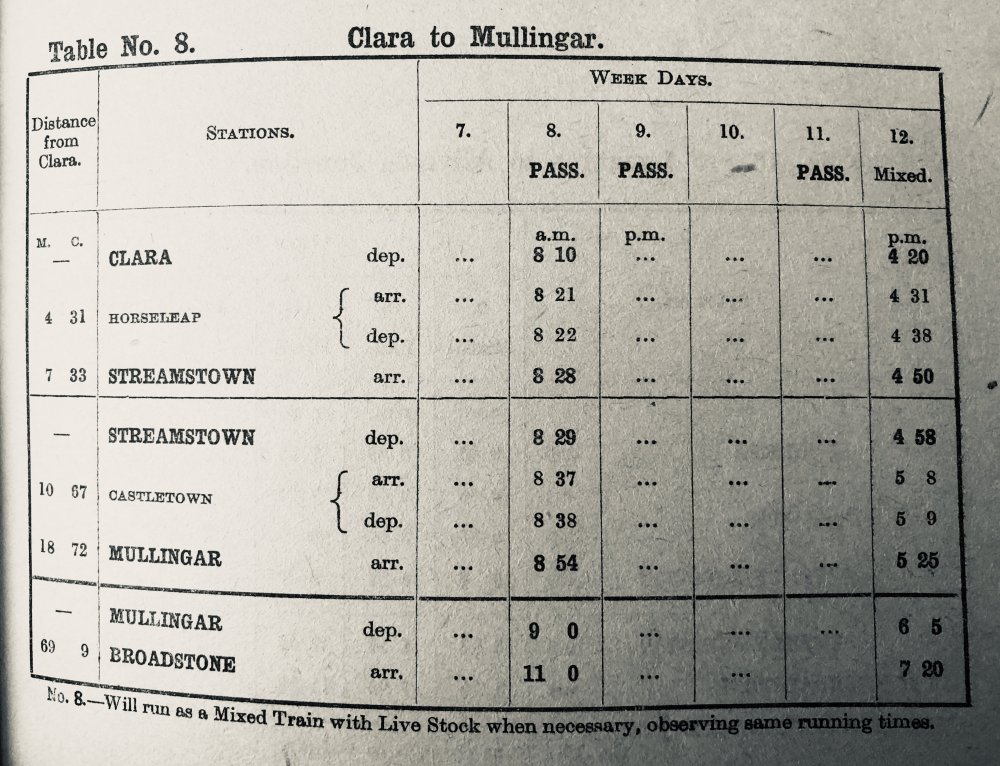 You’d have arrived at Athlone, then through Moate to Mullingar, through Amiens St (Connolly) and ended up at Westland Row (Pearse). ”Flying snails” were still reasonably plentiful on wagons by then, and probably notices or signs, though no longer locomotives or carriages.