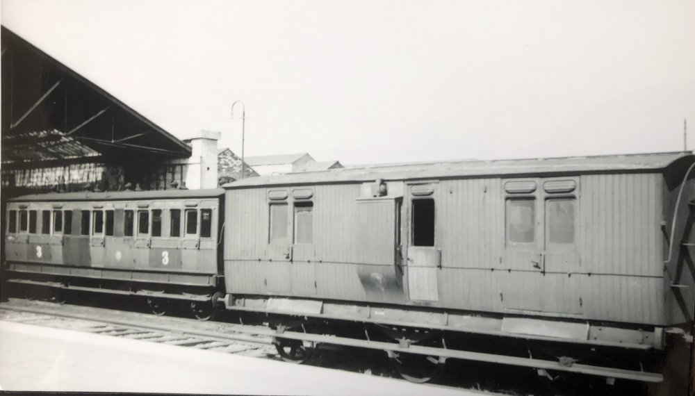In the mid 1930s there was MUCH less traffic on the roads compared to today. Or - is the coronavirus in full swing?!! This is Glanmire Road, exact date unknown but likely to be 1936-8. The station, of course, is on the right. The two carriages were across the river at Albert Quay station. Such were the necessities of “austerity” in those days, that rolling stock could often be just “touched up” instead of completely repainted. These two will be in the maroon GSR livery, though mostly faded and dulled - no lining, as befits much of the secondary stock.