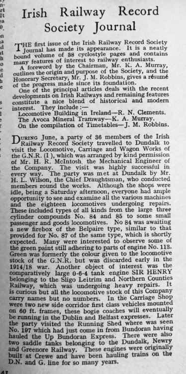 July 1947, again, and we learn that the IRRS has just published its first journal (a copy of which is beside me, as it happens!). And a snapshot of the Cavan & Leitrim @irishrail201 in 1947. -