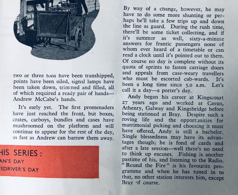 10. I’ve already posted some items from this, which was published in earlier CIE days. While it aimed at the public rather than enthusiasts, it contains much of interest. The following is from June 1947. The article about a railway porters day at work is an interesting insight into a long-gone world, but one familiar to anyone who worked on the railways that SO many layouts depict.