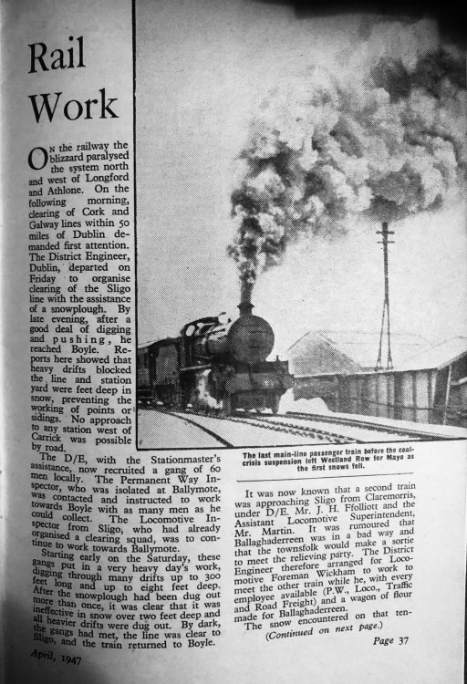 Cuisle, 1947. There had been in recent months what remains even today the heaviest snow ever recorded in Ireland. Many towns were entirely cut off for weeks, and running out of essential supplies. Perhaps this is, ironically, somewhat typical now!