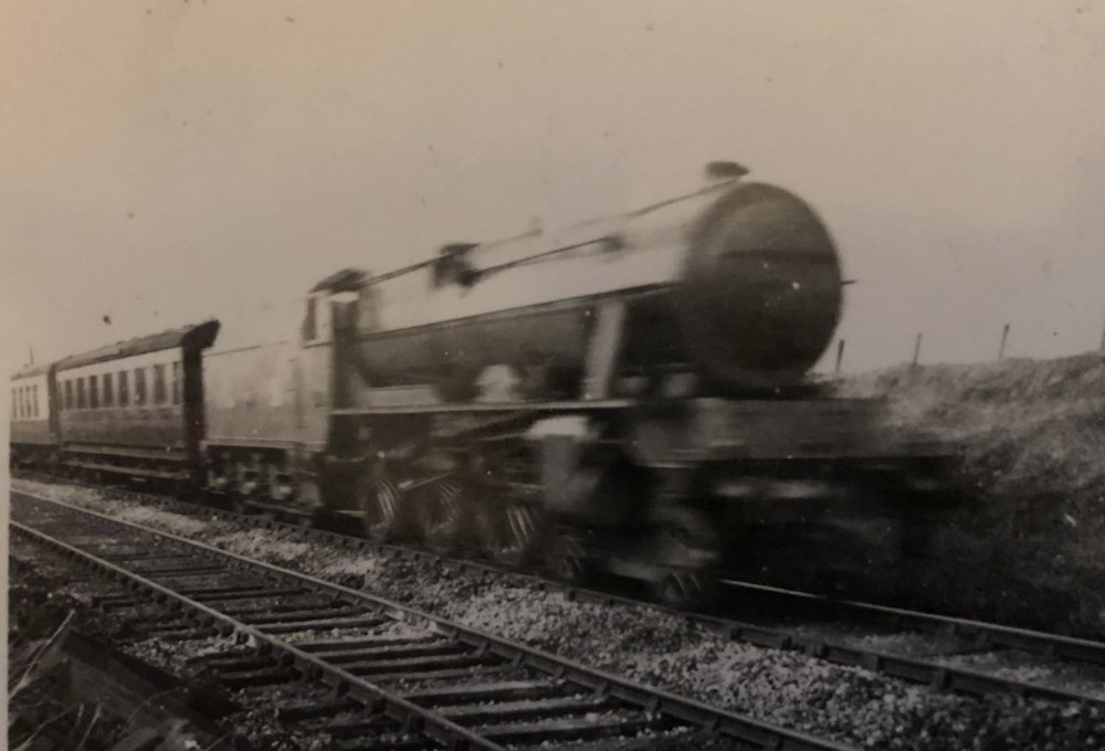 Quite possibly, NIR. I can tell you one thing - they were very lively indeed to travel in! Especially north of Ballymena, where the state of the track didn't help...... Interesting information, Lambegman - thank you! I was unaware the very last came out in CIE green..... Some of the AECs, plus at least one of the Gardner artics, ran in the early 60s still in navy & cream but with UTA roundels. Out near Hazelhatch, about 1940. Senior is out cycling and 800 scuttles past..... the second coach is a "Great Southern Pullman" in the 1929-34 brown and cream GSR livery. The leading coach, a GSWR side-corridor, is of course in maroon.