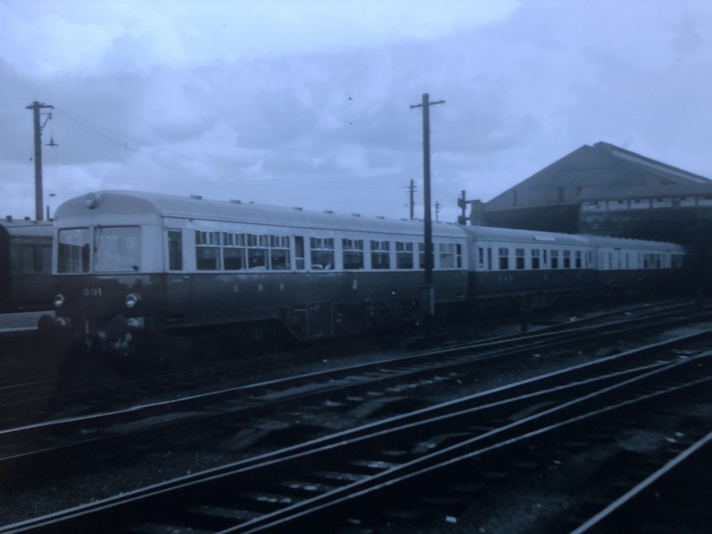 Sticking with the GNR, we have the following..... 1. “It’s just a diesel”, as Snr. Might have commented - yet it didn’t stop him taking a picture of it! An AEC set in Amiens St., ready to go to Belfast. Evidently this was within weeks, or possibly days, of their introduction (1950?). 2. Local train in Lisburn, late 1930s. 3. A big blue 4.4.0! I’ve a nite somewhere of which it was, and the date, but I don’t have it immediately to hand. 4. This is a very poor print but the negative is MUCH better, so all is not list. I’ll hopefully get it enhanced some day. This is at Fintona in October 1958, and the tram is being prepared for its last ever journey to Belfast.