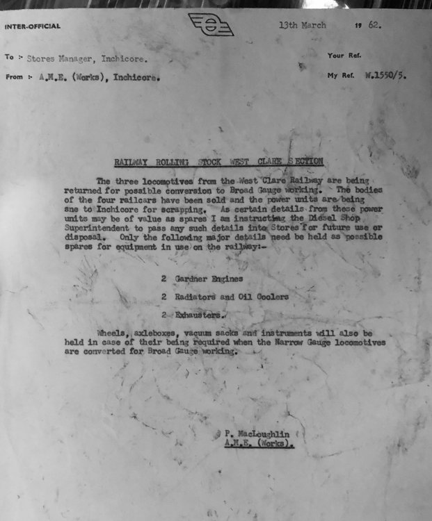 CARRIAGE ALLOCATIONS 1949/50 This gives an idea of train consists seventy years ago. Sounds a long time, but only a few years ago, nobody was modelling anything much before 1975. Then we got well into the black’n’tan era. Now, with J15s, A, C, B101,121,141,181, E & G classes, laminates, Park Royals, Tom vans, various loose-coupled goods vehicles, we’re into the “grey’n’green” era. One step more and this stuff’s of use. Now - the carriage allocations are of interest to anyone wanting to create a 1950s / early 60s branch line scene, as perusal of the attached lists show what trains were typically made up of. I say "typically"; on days like fair days, and extra coach might be added. If the normal branch set was taken away for maintenance, gawd knows what they might put in there instead. Senior told of a jaunt down some branch in the 1950s with a quite new CIE "Bredin-design" coach, probably only a few years old, with an absolutely ancient, clapped out MGWR 6-wheel brake third behind it. For anyone interested. I have this list to cover THE WHOLE CIE SYSTEM FOR 1949 / 50, main lines an'all. So if anyone wants to know what was on any specific line, ping me privately and I'll send it to you. The GNR's perusals of running costs for AEC cars crept in here too.....