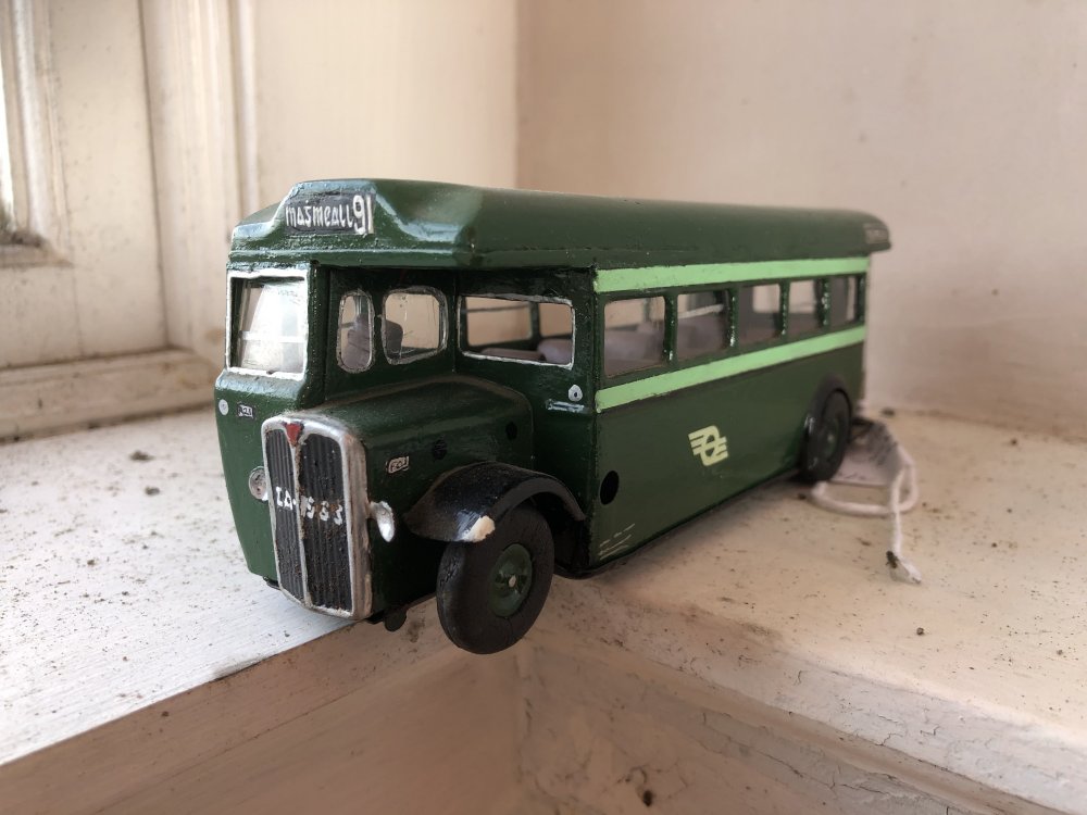 In the mid or late 1950s, for a very brief period, CIE painted at least two standard “H” vans green to match passenger stock. One was based in Cork, one in Tralee. They were attached to the back of the AEC set doing the Cork-Tralee and Tralee-Cork trains which carried mailbags. This isn’t a “Fry” model, but one of the “Castle” models made by one of the “Castle modellers”; Messrs. Connaughton, Tighe, Magowan, McGlynn and others. For those who knew some of these good folks, there are several models of this era with the initials “A I M” on them. Does anyone know who this was? Maybe one of the Magowans? Any information gratefully received.