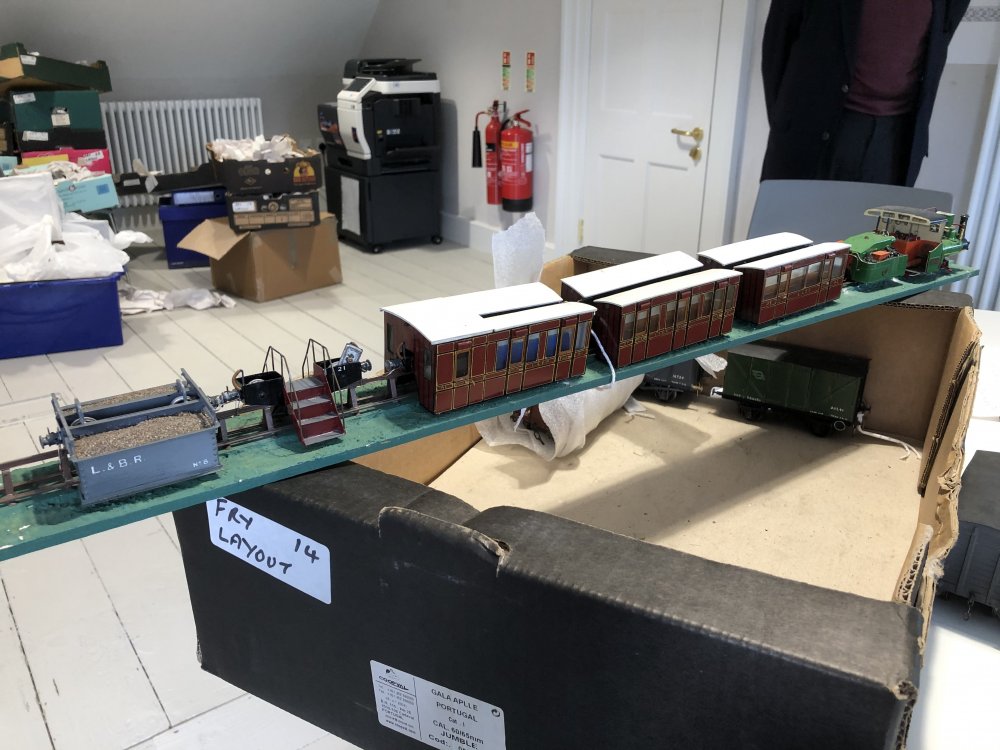 The full Lartigue train on its section of trestle track, as it will displayed once I find space for it. Now, in the immortal words of the Amurrikan tourist: “I gotta question for you”: Does anyone know if this set had previously been mounted on this small section of track when on display in the castle? One of my learned colleagues in the Record Society told me that he thought that this whole train was actually operational on Fry’s attic railway. Is anyone here able to confirm or deny this?