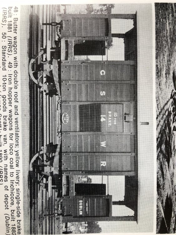 An interesting thread, Colin. Very little British stock can do anything other than the very vaguest resemblance to Irish stock. Some English LMS stuff can resemble some NCC stock, and the old Triang GWR brake third with the bowed-in ends resembles a pair of Waterford, Limerick & Western Railway brake thirds built in 1898 and withdrawn in 1955 by CIE. (One compartment too many, though). Thats about it. Worsley Works do a great range of Irish stuff, but as seen elsewhere on this site, they take a bit of skill and experience.