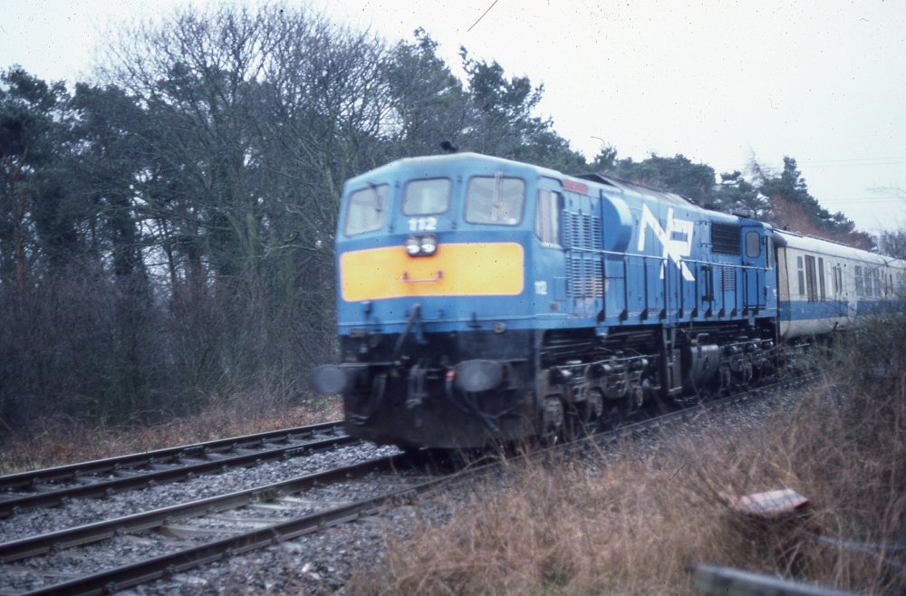 11. OK, here we go. This is 13.1.1986 until further notice; turns out I don't have 1987, but it's likely exactly the same. Trains in BOLD run every day; others are just paths and may or may not run. Down trains: 00:25 Shelton - Abbey - Galway fertiliser PATH dep. Mullingar 05:50, arr. Athlone 06:46 Loco: 001 09:35 Shelton Abbey - Ballinasloe fertiliser PATH dep. Mullingar 15:30, arr. Athlone 16:41 (Stop scheduled moate 16:07-16:230; reason not apparent, probably to fit in with paths west of Athlone) Loco: 001 18:50 North Wall - Ballina Asahi Liner Pass Mullingar 20:43, arr. Athlone 21:36 Loco: 001 21:45 Connolly - Galway Mail Dep. Athlone 23:07, Moate 23:36-23:51 (Crosses up train), Athlone 00:16. Loco: 121 On Saturdays, this runs earlier, dep. Connolly 19:50, dep. Mullingar 21:14, arr. Athlone 22:15 Up trains: 22:35 Ballina - Shelton Abbey Empty Fertiliser PATH dep. Athlone 00:40, arr. Mullingar 01:30. leaves at 02:25. Loco: 001 02:25 Ballina - North Wall Asahi Liner (Tues - Sat) dep. Athlone 05:27, pass Mullingar 06:19. Loco: 001 22:00 Galway - Connolly Mail dep. Athlone 23:20, Moate 23:45-23:48 (crosses down train), arr. Mullingar 00:18 Loco: 141 SUNDAYS No regular trains, but three DOWN paths and two UP paths for Knock specials from PEARSE, motive power not specified for any of them. Note: Two down paths for ferts, butn only one up; the other obviously going via Portarlington when it runs. Also, the WTT shows a 121 for the down mail and a 141 for the up working. Of course, these could be interchangeable. These two mail trains, which crossed at Moate between 23:36 and 23:51, were the only trains on the line by then (and for quite a few years earlier), which carried passengers. Hope this helps. JB