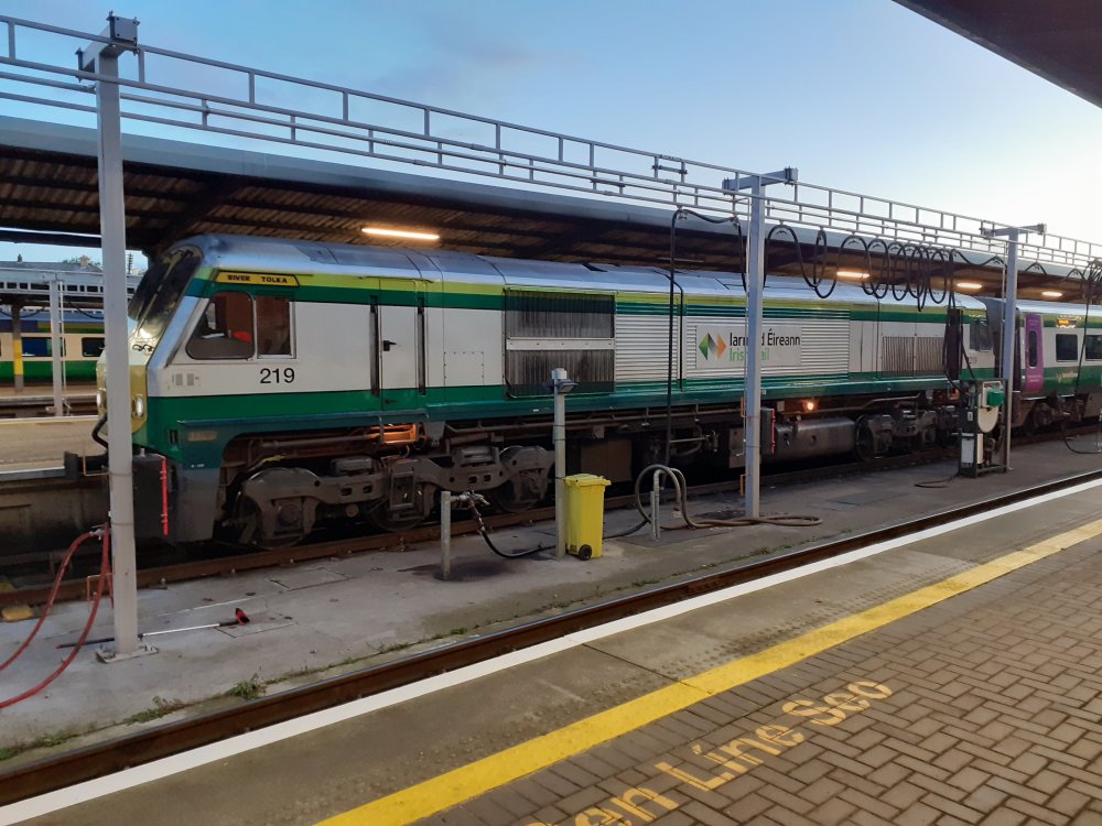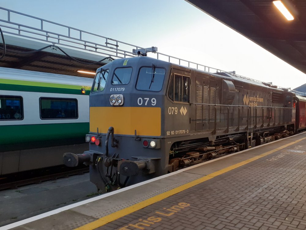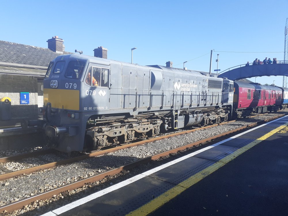 4. Some shots from last weekend's tour. Dublin Heuston Tullamore Roscommon Castlerea Ballyhaunis Westport After arriving into Claremorris 079 was uncoupled and 084 took over. Ballina 084 at Athlone, on our return to Dublin