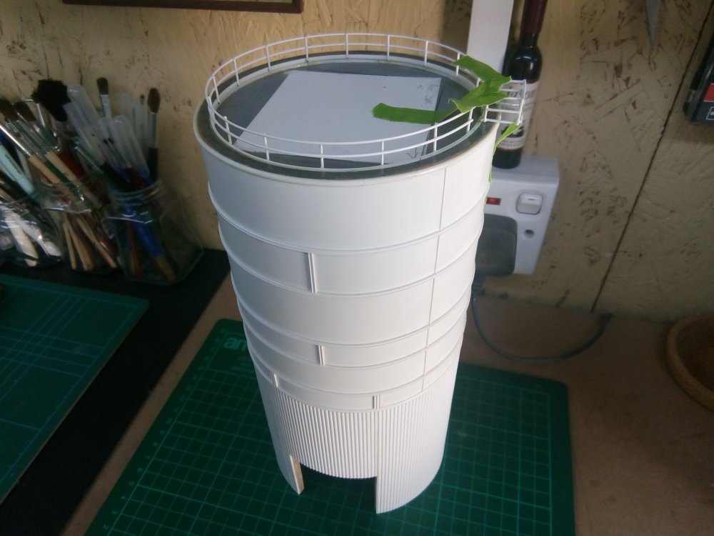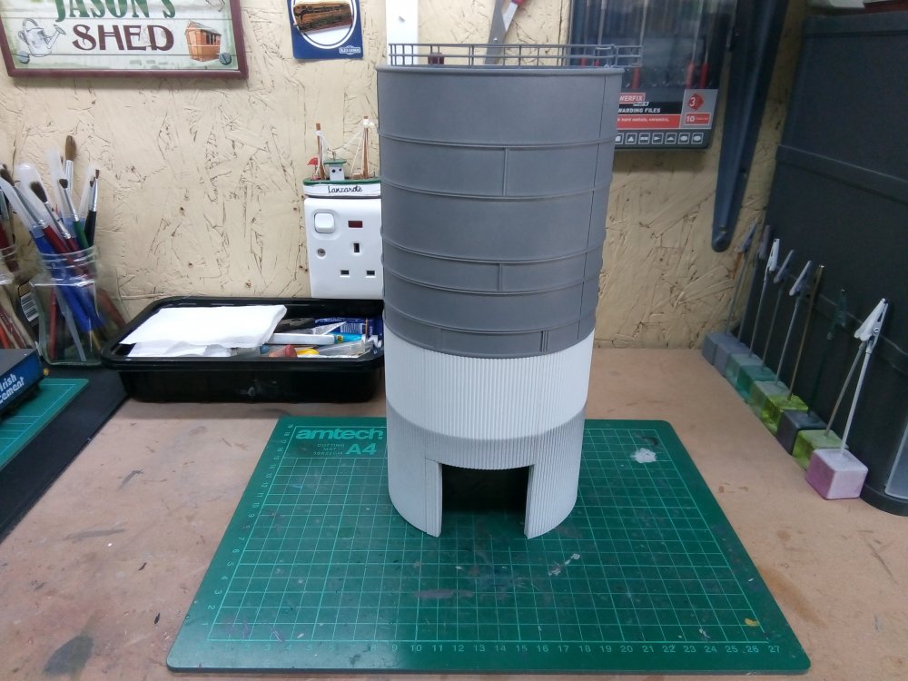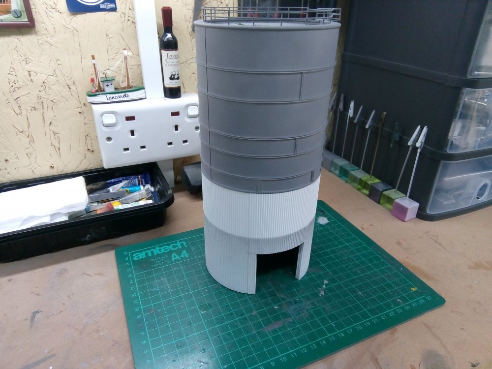 10. Evening all, Very little work to report on from the bench of late. I really must put that right over the coming months. Anyway, to try get the ball rolling again, I made a long overdue return to the silo during the week. And after a couple of hours work, it's now at the stage where it's ready for painting. I'm also considering mounting an LED just inside the entrance to replicate the dimly lit interior which I've noticed from various photos. Although thinking about it, it's probably not worth the hassle for such a minor detail.