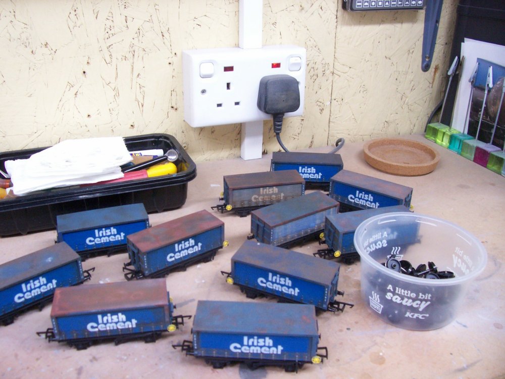 When I first built these cement wagons about 3 years ago I made one of the worst mistakes you probably can when modelling and rushed them, resulting in a lot of wobbling and sometimes derailing when running. Obviously the badly built chassis' were behind the running issues so about two months back I decided to start on a new batch and sort the problem once and for all. While I was working away on the building the new chassis' I took the chance to tidy up parts of the weathering and paintwork on the bodies which was another thing I hadn't been happy with, and I've also added some extra detail to both ends of each wagon by using plasticard and SSM break wheels and wire.
