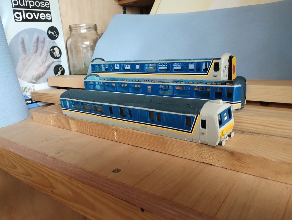 Hi Darius The 80 class maroon/blue is a 3d print, the bumble bee livery 80 class is MIR brass sides etc the gen van is an old mk2 coach modified. Regards TDR