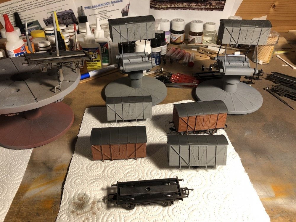 The best thing about this is the 'time' spent in another mental zone at the workbench, distracted and relaxed. Very therapeutic doodling with model bits. CIE goods wagon fleet soon to be expanded. Airbrush developed a cough spluttering paint, so had mid session cleaning.