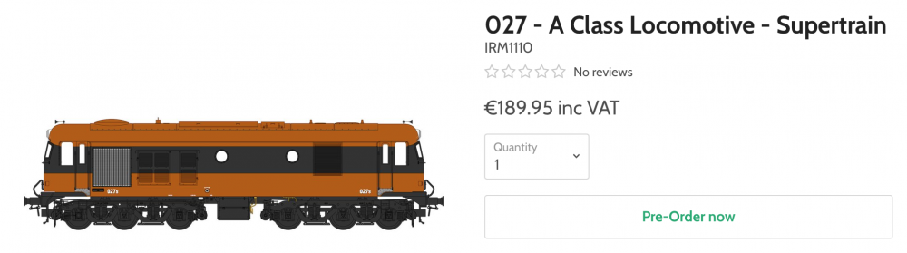 Who mentioned Murphy? The B&W pic you posted was of an early 1960s GM 121 in the classic CIE "Black'n'tan" livery. Admittedly the tan was only on the solebar and front of cab. Supertrain livery was all over orange with a black band, which eventually morphed into IR and then IE liveries with the white tippex stripes added to what had been a Supertrain livery. CIE black livery was only used on a small number of early Sulzers, C class and A class often with the yellow panel on the cab front. @jhb171achill has posted many fine pieces on livery history. Comprendee kind sir? PS: Dave @WRENNEIRE Just for added clarity here is a Black'n'Tan livery 121 like the one in the B&W Photo you posted.