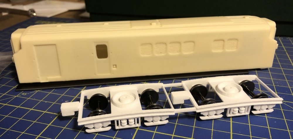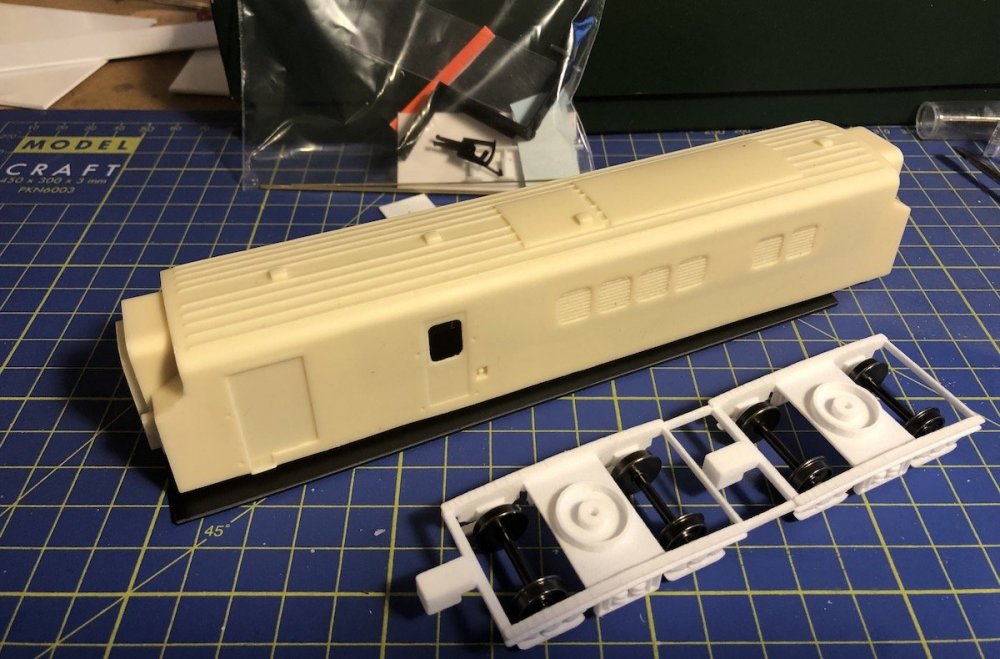5. Ordered this only on Tuesday but arrived by post today Wednesday, now that's good service. Rebuilt Dutch GSV from Irish Freight Models. The bogies are particularly nice and have NEM pockets. Another little project. This GSV will be suitable for running with Bachmann mk2 Irish Rail coaches and has compatible corridors connectors as per the prototype. The resin moulding is of good quality. Assembly and painting due in the next week or two. I understand these are mainly to be sold as RTR but I am grateful for getting my hands on a kit. x