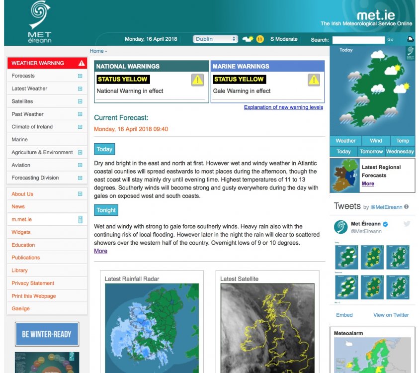 'Au Revoir' met.ie old web site on the 18th. It has served well for many years, was concise and visually effective. One of the first to incorporate an animated rain fall radar which was one of the sites best features. The all new singing all dancing met.ie web site launches later this week. It has tons of visual data.