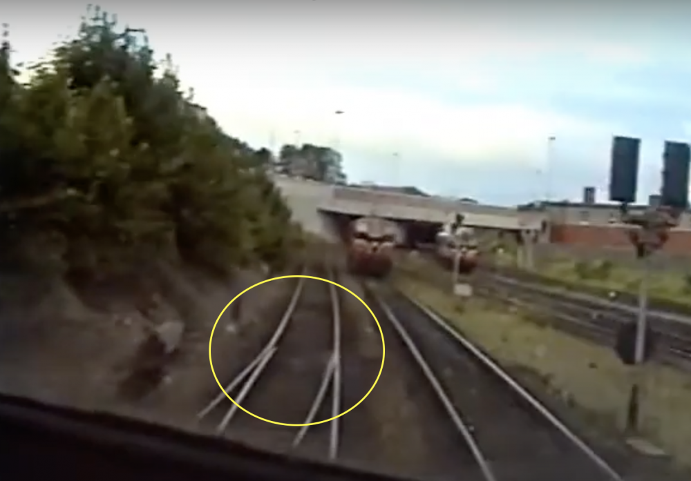 1m32s noticed the points are not set. See this before on some video of trains running through 'trailing' points that were not set. Interesting how they must be pushed open by the trains without breaking the spreader bars or other linkages. Not seen this before but heard of it. Presume the mechanism is designed to cope with the point blades being forced over.