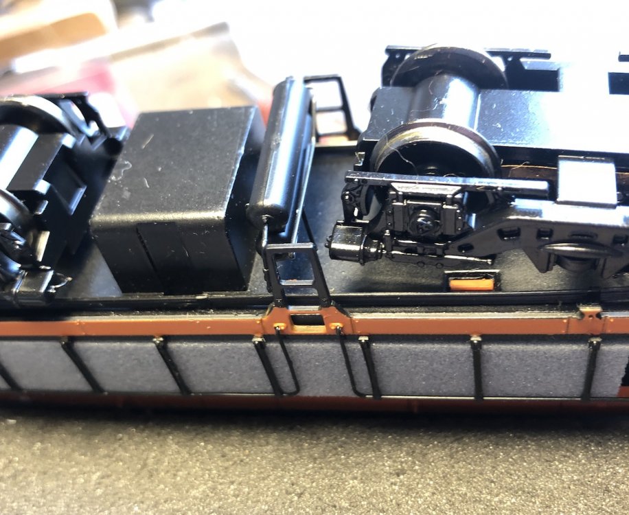 Recently received these two beauties from Silverfox who cater so well for my personal favourite era. HLV or nicknamed 'Tin' van when silver, Modified Heating and Luggage Van The famous CIE six wheeled HLV (Heating and Luggage Van). The fore and aft axles articulate beautifully. Both vans fitted with correctly sized and positioned NEM pockets so it was just a matter of fitting Kadee No 18s in seconds to change the couplings. Thanks to Silverfox and Irish Freight Models for helping me to build a fleet of passenger rolling stock from the glorious CIE black'n'tan era. Have a few flying snail green laminates on the way. Laminates, vans, TPOs and Park Royals can now be mixed with my CIE variants of the MM cravens. 6 Wheel HLV + Laminate + HLV (modified version). Normally only a single HLV would be in a formation but a spare is being repositioned from Ennis to Sligo via Claremorris. Both of these two vans are in the queue for weathering, but couplings already changed.