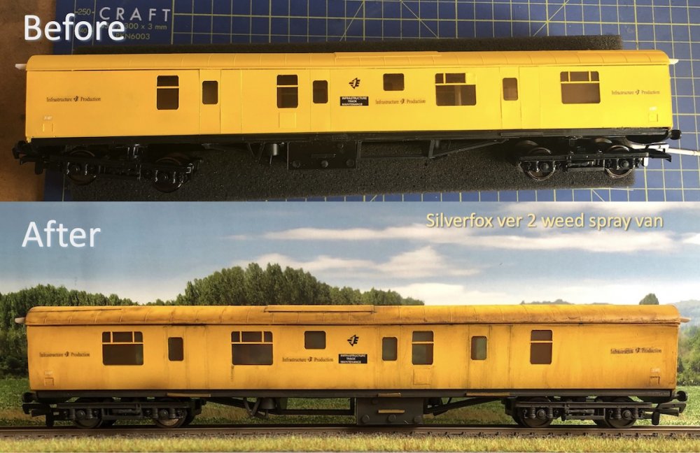 Hi Paul. SF's next batch is not due until August or September. You could try Chris Dyer who may have stock. They only have one version of the BR Mk1 weed spray van (see the pic below). This version is the correct one to run with the IRM weed tanker wagons. Personally I'd prefer the older laminate coach weed spray van running with 20ft tanker wagons as its closer to my era. The older weed spray coach looks more like a converted bogie parcel van than a passenger van (see pic at bottom of page). Earlier CIE era weed spray train using 20ft rather than 42ft flat wagons for the chemical tankers combined with the 2 PW vans and 2 20ft container wagons. The IRM set could be adapted by removing the tankers from the 42ft and placing them on 20ft container flat wagons