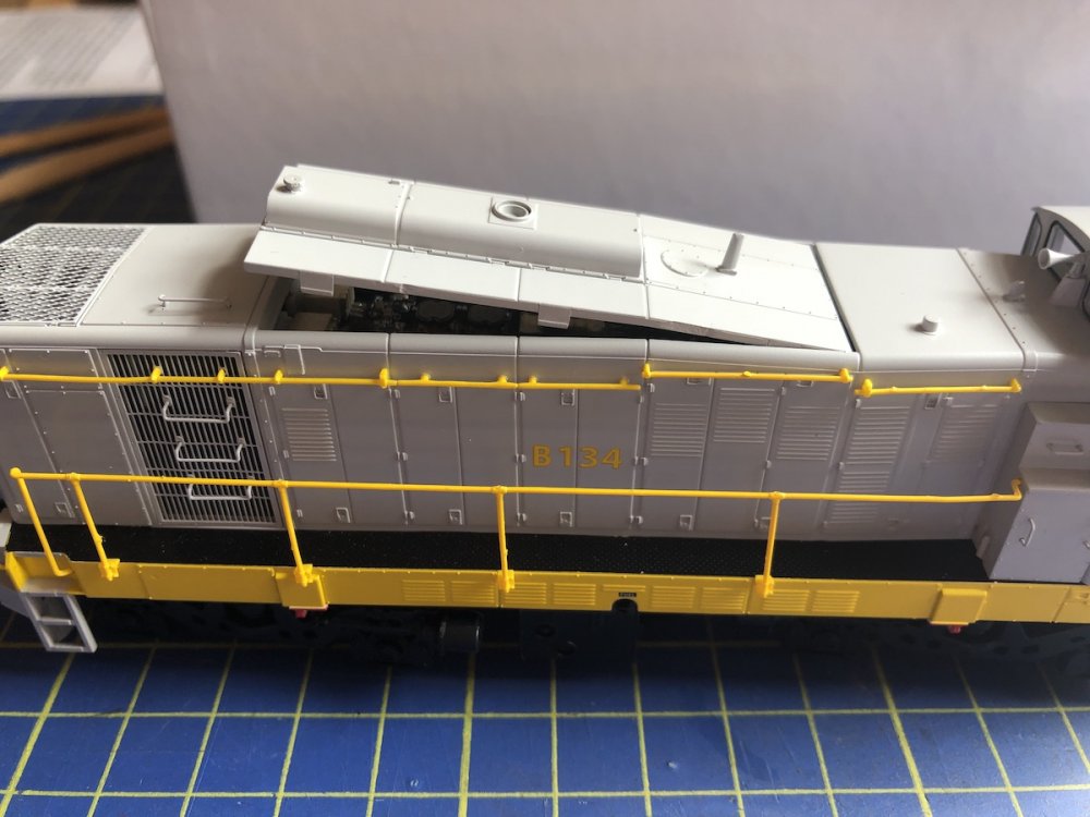 Started the process to weather this 121 this evening. Will finish up tomorrow. Took the walkway rails back off for access. Yes the prime mover (engine) and brake sounds work on DC as well as the marker lights.