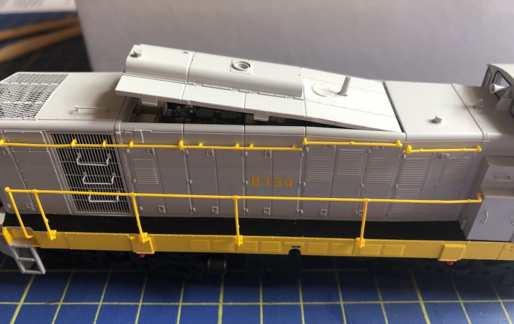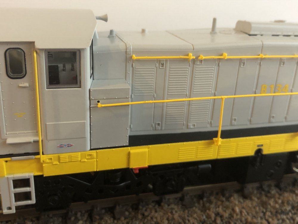 Sounds great. Happy Days, B134 arrived this morning from Accurascale's UK base, but the sound decoder must be a day or two behind. Will try run a Lenz 21pin for now. Had a look inside the decoder bay, it is tight in there alright. Love the see through side grills on this loco. Took B135 out for a test drive. Beautiful gearing and smooth motor, even better than the mythical 141/181 drive systems. The best yet from Murphy Models. Sublime. I put the valance cover on the cab end and kadee no 20 coupling on the bonnet end. Needed a simple plastic shim fitted in the NEM pocket to avoid the kadee drooping. All good with the height gauge and coupling tests. Super smooth runner with an even better motor drive than the legendary 141/181s. Tried it on DC first before DCC. Gorgeous model. Will give B134 a run in the next few days, might even try the paid bonnet2bonnet in consist even though the grey 121s never double headed in reality. Nice detailing pack but handle with extreme care. I do like B135 with its original 196l layout as per delivery and early years of operation until walkway grab rails were added near the end of the black'n'tan era. An exquisite result, worth the wait, thanks to Murphy Models. The best yet from that stable, and it runs as well as it looks. Superb. Congrats to MM for the "crème de la crème" of their loco portfolio. It looks and runs so well you could lick it. Love the see through ventilation grills on the bonnet sides, that's a first for any Irish model loco.