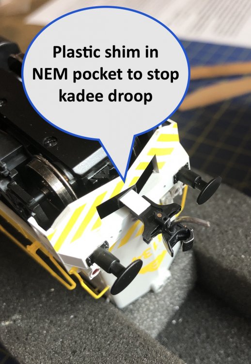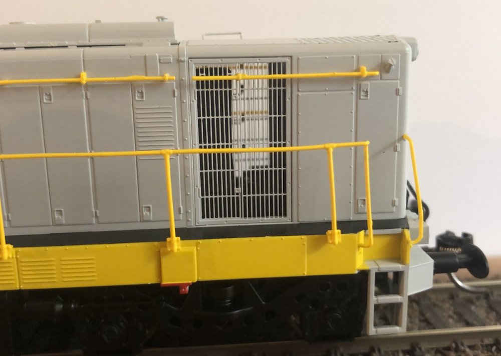 Holy Moly the detail inside the cab with driving controls is sublime One of the high lights of this model is the see through body ventilation grills This model is multiple gears above the already superb 141/181 GMs, look at details like the wipers and window rubbers. Opps just noticed from this photo one of the cab door grab rails is missing, hadn't noticed until posting this. Decoder installation is so easy. The cover pops off easily but goes back on very snuggly when pushed back on with no gaps. Lenz Silver+ 21 pin until the MM LokSound arrives next week. Fitted Kadee No 20 to cab end, and no 19 to bonnet end. Kadee height perfect with the shim installed and running trials using uncoupling magnets successful A engineering and design feat to fit so much inside such a small loco. Love the finess of the wipers. The tablet catchers lacked were low profile. The more you look at this model the more things and detail you notice. Thank you Murphy Models, this model line marks one of the high points of a highly successful career in the Irish model rail business. Worth the wait and more. Thank you for your successful business products