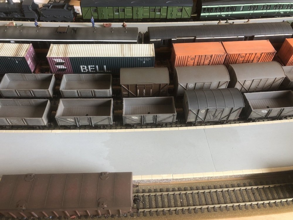 1. Old and new. Modern era containerisation did away with much of the old railway infrastructure needed to support the transport of goods all around the country by 2 axle pickup goods wagon trains. Within a few years the goods yards, sidings and goods sheds once busy were decaying and redundant, much of the more interesting track work at stations ripped up as part of logical rationalisations. Cement, beat and fertiliser traffic kept goods traffic going for a few years but now 'freight' as its now known has diminished and moved to road. All that's left is the odd timber train, a few liners a week plus tara mines.