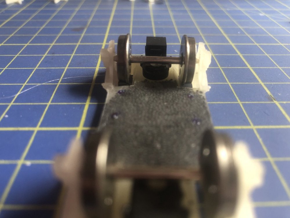 11. Hi Popeye. I just superglued the NEM pockets to the mount on the underside of the chassis because the protruding retaining screw fouled the wheel axle causing 'stiffness' and resistance. But it seems to have worked out ok. Hopefully I have the NEM pockets oriented dead centre and perpendicular to buffer beam so the kadee's will couple and uncouple ok over magnets. Coupling screw was just rubbing wheel axle so used glue instead to retain the Dapol NEM pocket. Solves the dapol droop as well. Chassis is running freely now without any friction.