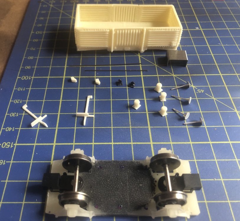7. No wonder I don't get on with brass. Spent a few hours fiddling with tiny bits of wire and cutting staples for the brake gear and the door catchers (ie brake gear protection bars for when doors swing down open). Tiny fiddly parts my fingers are bigger than when I was 10yo and my eyes are not those of a 10yo anymore either. Frustrating yet enjoyable at the same time. Not entirely happy but its the best I can manage with these clumsy fingers Then had to shape four sets of door swing limiters (ie door stops to protect brake gear from damage on prototype). This bit took forever because the pairs of stables kept separating. Mind you my kadee pliers came in handy here to shape the curved bit. At long last done. Waiting for super glue to cure than will finish it off with the buffers and painting tomorrow. I don't ever want to see a stable again. In future I'll might try and cut strips of aluminium to form these.