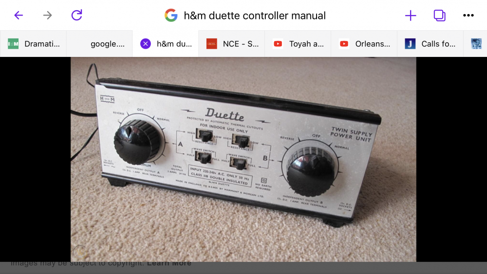 Is this is the type of H&M controller that you used for 121 ? If so , you have an problem as that type of controller is not suitable for the motors used in today’s model railways and may have damaged some of the components on the PCB. This uses a Rheostat to increase/decrease the voltage which is ideal for today motors. H&M cease production of the Duette controller in the 80’s with the release of the Commander transistorised controller as a replacement. I would suggest that you look at replacing the H&M with a Gaugemaster / Morley Controller non feedback controller.