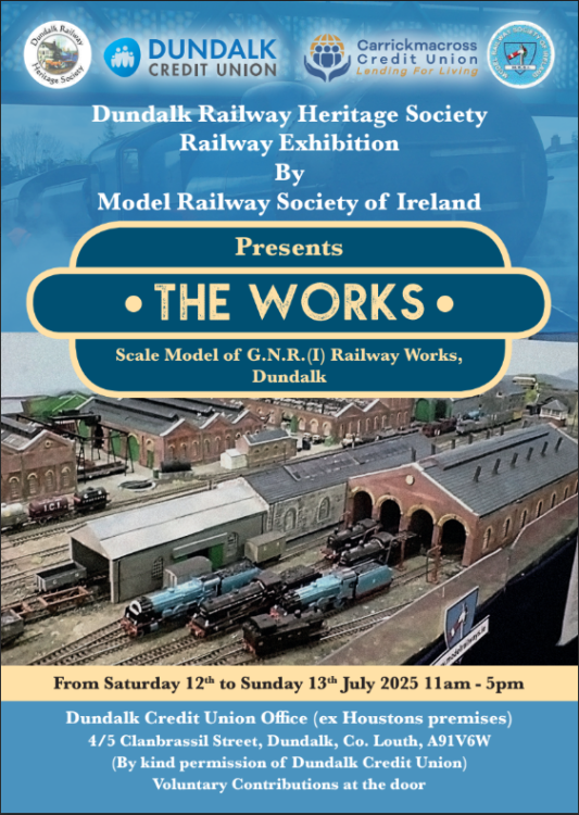 The Model Railway Society of Ireland in association with Dundalk Railway Heritage Society is proud to present Dundalk Works in Dundalk on Saturday 12th and Sunday 13th July 2025 This is another opportunity to see the iconic model in its home town and in Central Dundalk too More information to follow