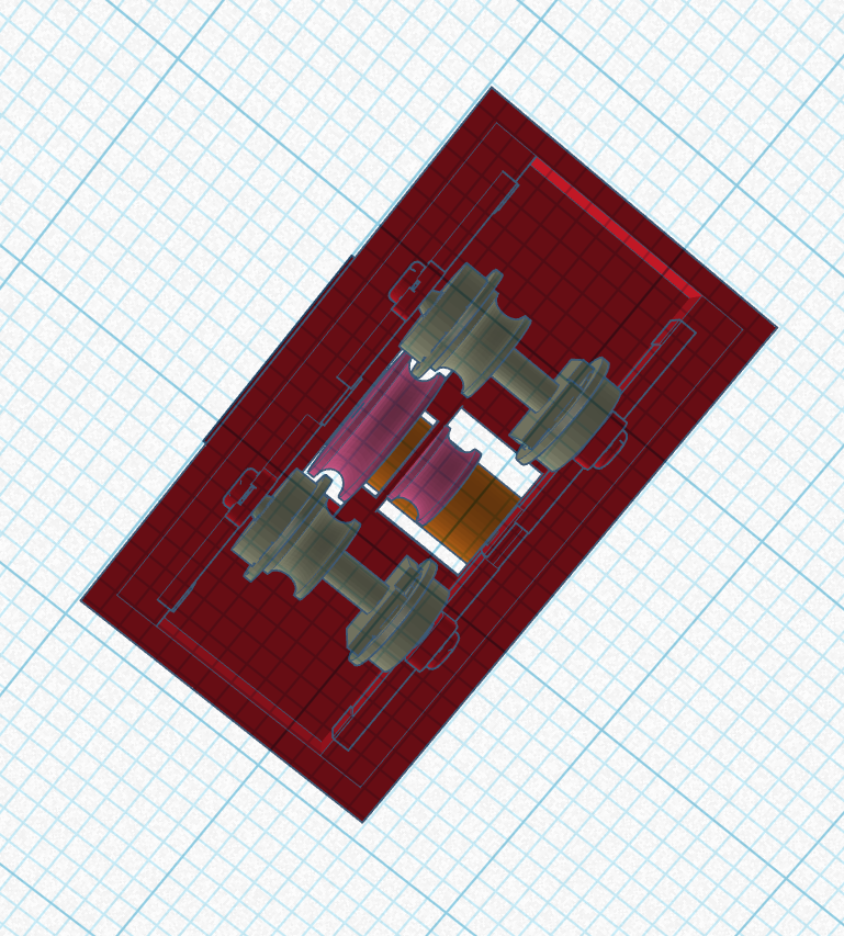 Now initial designs had the motor mounted where the bottom pulleys are and a direct belt (O ring) connection to the wheels