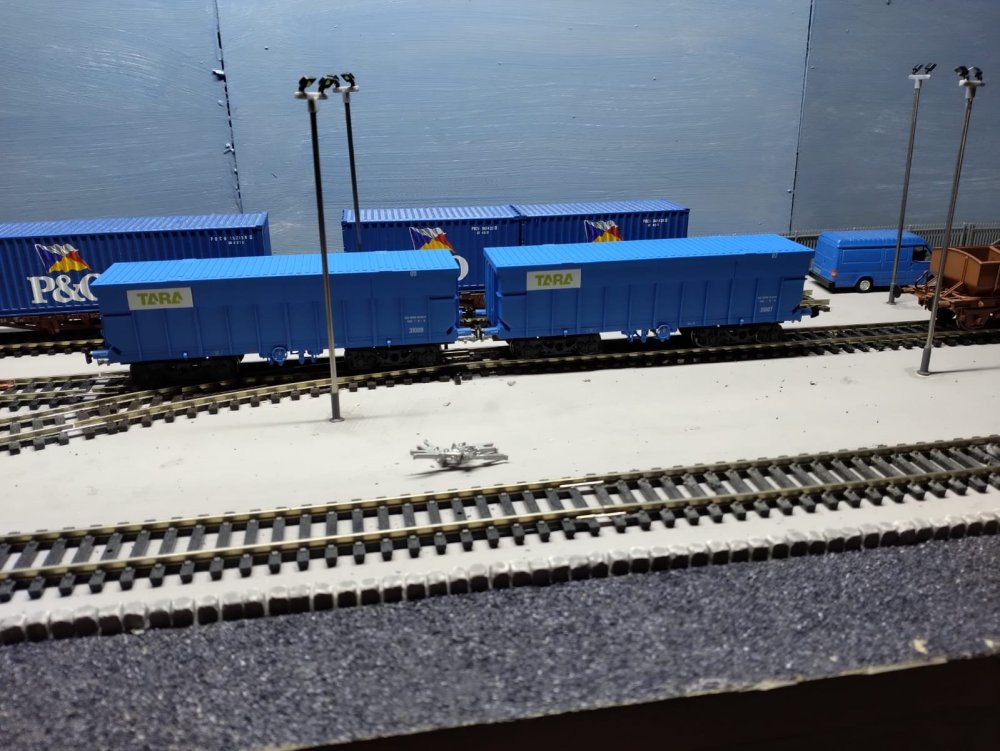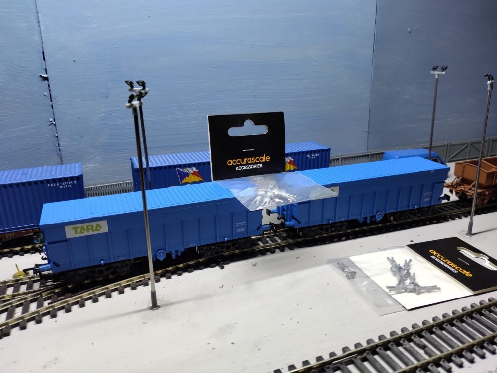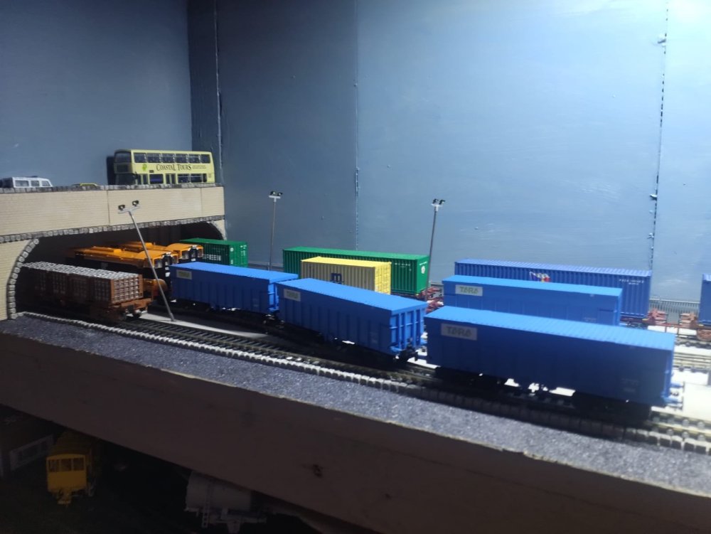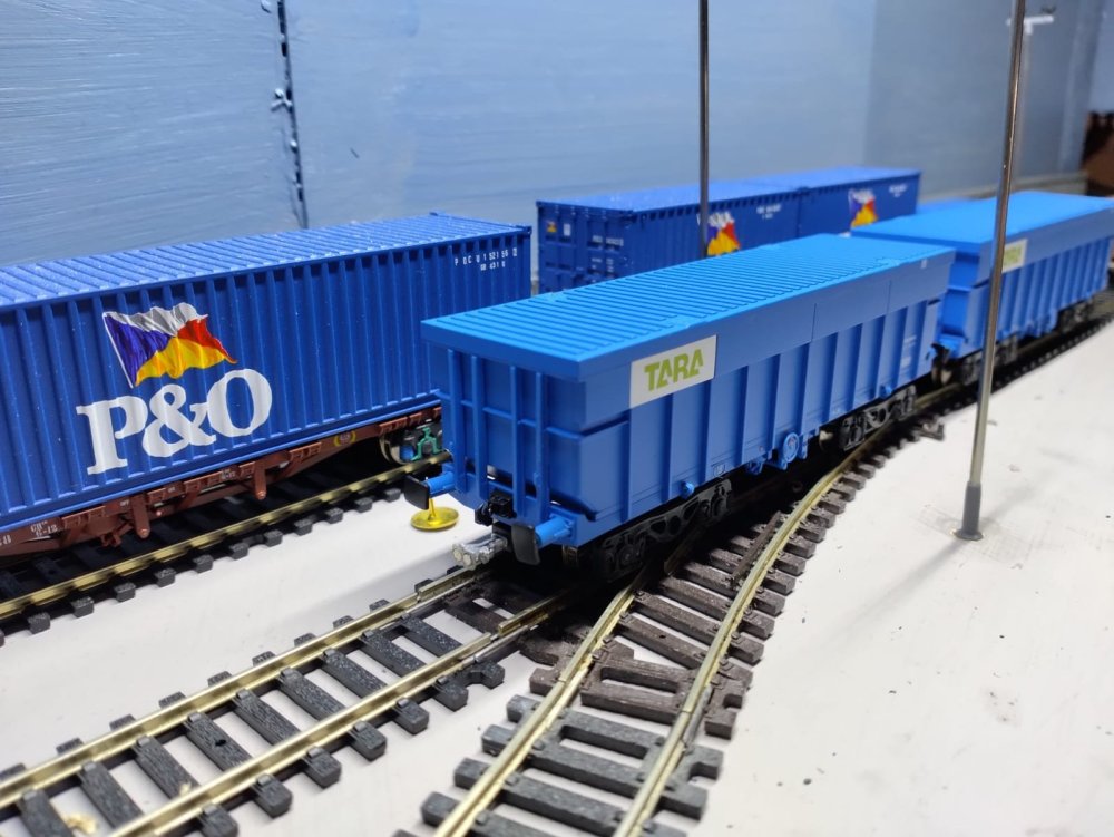 9. Dellner update: So I added this crossover during the week to add some interest to the through road on the layout ( so now theres an up and down road to and from the tramway) and predictably started to have buffer lock, The tara's go through fine but neither my flats or MM locos would so i had to have another look at spacing them out, after pulling them out of the nem sockets a little bit and affixing them in place with a small dab of PVA as per bachmann's recommendation on fitting detail parts for later removal, ALL of my flats and 192 are going through these points without a hiccup. Overall I am really impressed by these couplings and will continue to convert compatible stock. Final update for now, As these taras are a bit shorter than the flats I was happy to see I could fit an additional one into the cassette so i decided to pick up another box of them to complete the "rake" which breaks up the monotony of the 2 wagon trains of flats that will typically be being shunted about. Also picked up the coastal tours bus as having a Dublin based layout finally necessitates the need for a nice DB model, I was able to look up the old routes for the southern coastal tour and it would have passed within a street or two of the yard so to me that was enough to select one for this layout. Thats it for new rolling stock for this layout, and my list of jobs to complete is getting smaller and smaller, so hopefully by the next update ill have a controller plugged in and trains can be moving under their own power