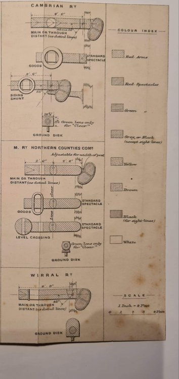 Some images from a sheet of pre Grouping signal standards, including some Irish, possibly from a signalling contractor. Includes a colour key. -