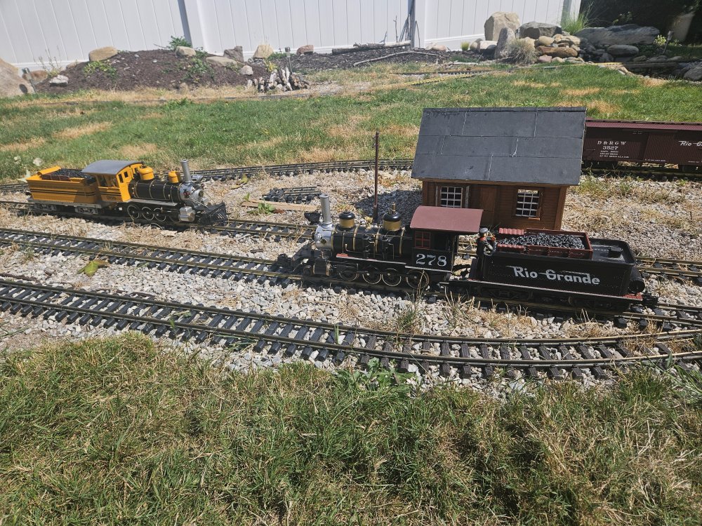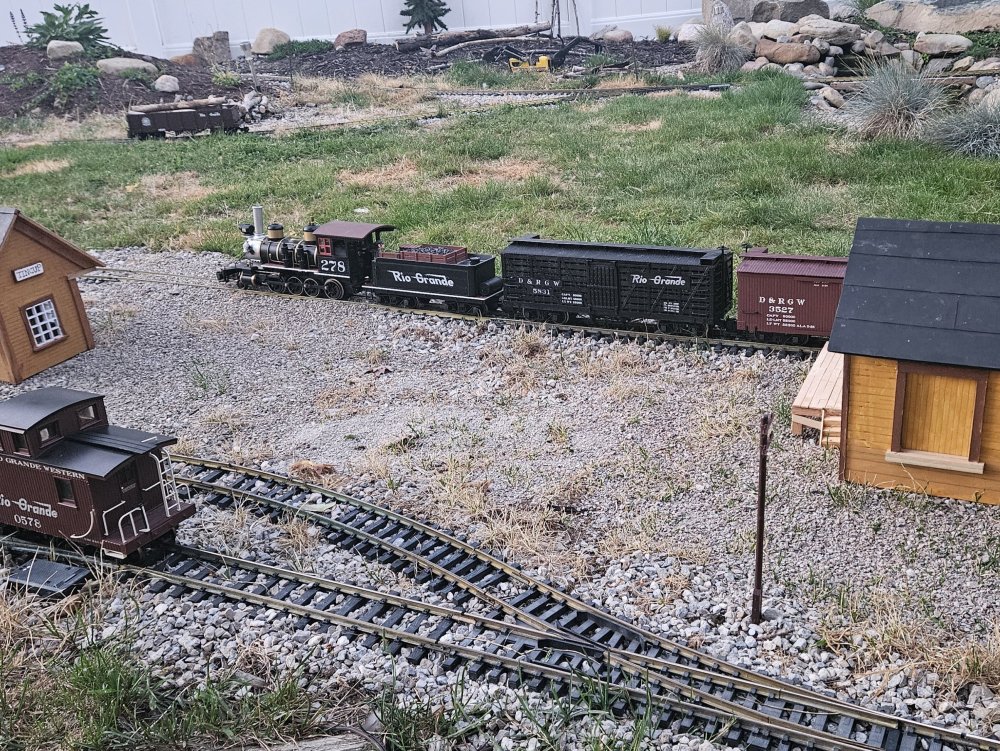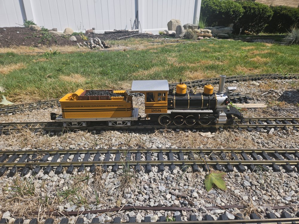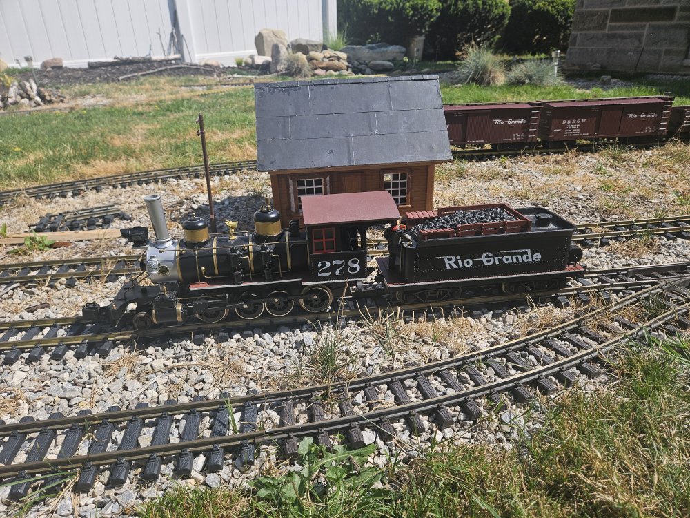 The railroad finally has an identity, the Tincup branch of the Denver and Rio Grande out of Gunnison Colorado about 1950. The decision was pragmatic, I already had a great running Aristocraft C16 locomotive which just needed to be relettered and a number of Rio Grande freight cars. Bachmann Big Haulers boxcars, gondola and stock cars in Rio Grande livery were available at very reasonable cost. I removed the factory lettering from the C16 with brake fluid and relettered it for Rio Grande 278. A second Aristocraft C16 268 in the D&RGD bumble color scheme was found on Ebay at a very reasonable cost, The previous owner adapted the locomotive to run on battery power and removed itspickups, It has two wires running from the motor to the tender. I plan to return it to battery power by installing a Piko r/c unit and rechargeable battery. Both 268 and 278 worked lightly laid branch lines out of Gunnison Colorado in the early fifties. 268 was painted in the then new diesel color scheme in 1959 for the Chicago World Fair in 1949 and retained this scheme until retirement when it was donated to the city of Gunnison where it is on display. 278 is also preserved. I imagine the railroad to be an imaginary branch out of Gunnison to the real town of Tincup, a town Malcolm Furlow used on his San Juan Central project layout in the Model Railroader in the 1980's and has inspired the railroad.