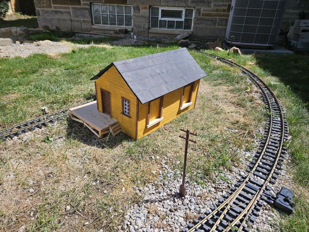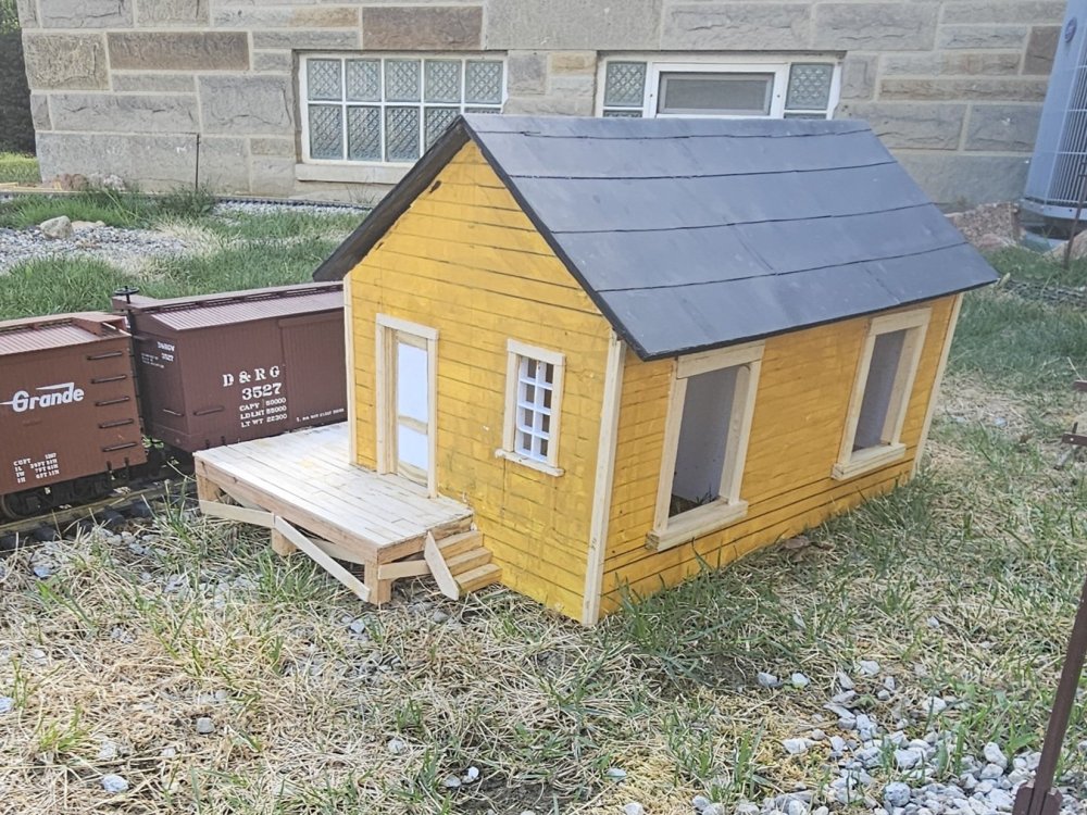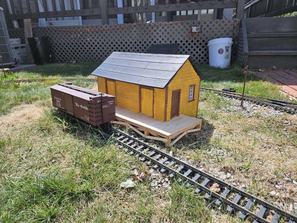 More progress on the Tincup freight depot. In the background of the first photo is a Rio Grande sign, a gift from Maureen who was insistent that the railroad had a name!