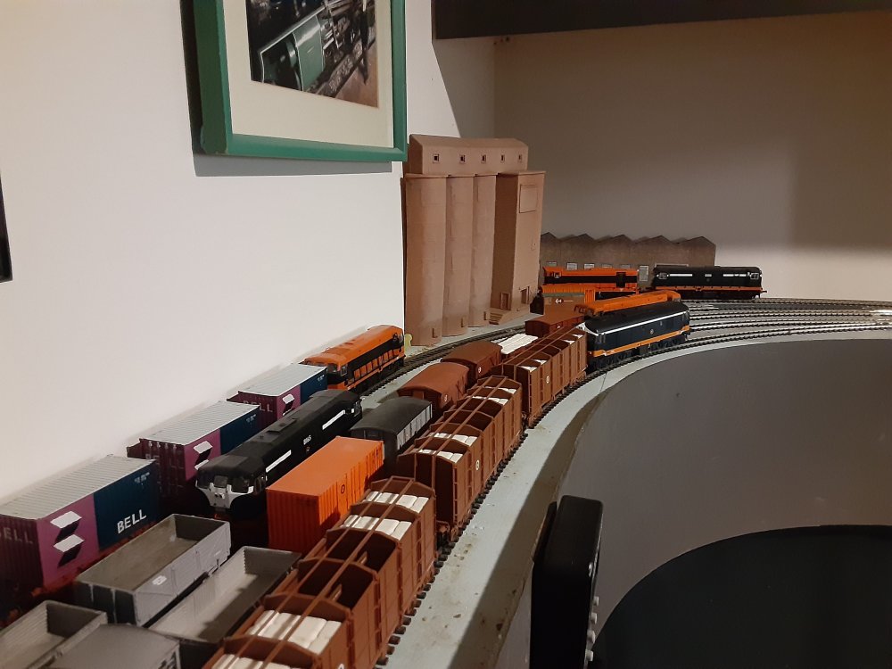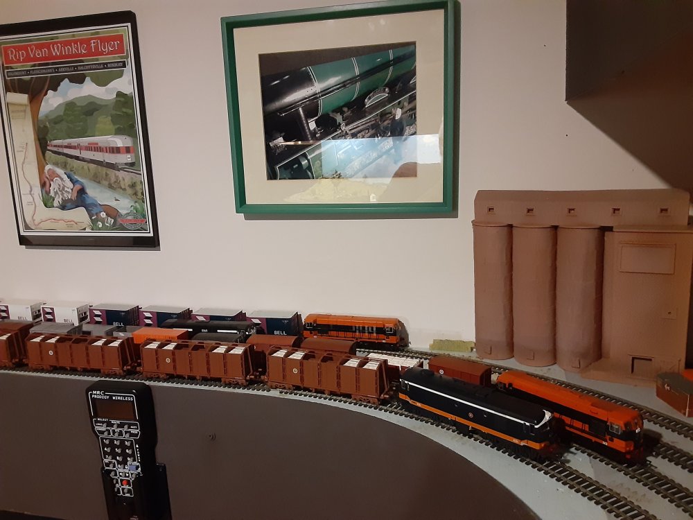 15. The lack of progress on the layout in the last months was as a result of Maureen and I seriously considering moving. That is now no longer under consideration so work can resume once more. One project where some progress was made however is the conversion to Kadee couplers. At this point over half the loose coupled goods stock including all the opens used in beet service and the end wagons of the Bell liner and bogie fertilizer wagons have been fitted along with about half the locomotives. Kadee #5 couplers in their own draft gear boxes have been used on most wagons which prove to be extremely reliable. #19 were used on locomotives, the bogie fertilizer wagons and the JM brake vans. Operatuon is so much better and enjoyable with the Kadees. I don't use magnets but prefer to use cocktail sticks for uncoupling, a method I have used since my HO American modeling days. The accessibility offered by the high layout height and walk around design make this method very practical. I was skeptical about using this method at first but quickly found that during operation that operators are so engrossed in planning shunting moves that the introduction of "the hand of god" above the trains was not a distraction..