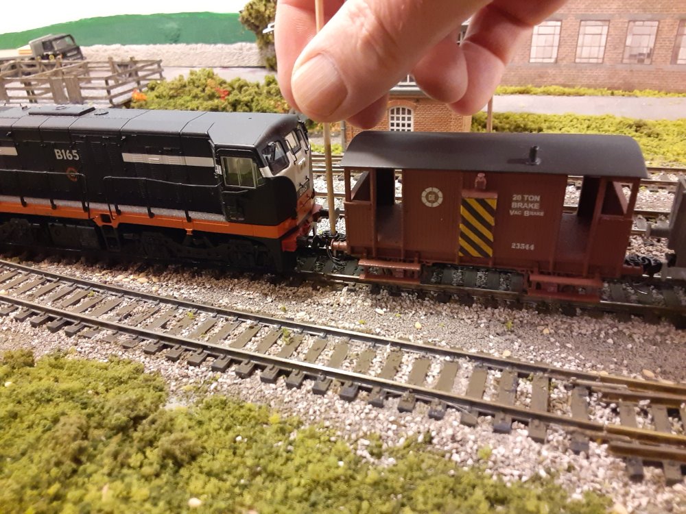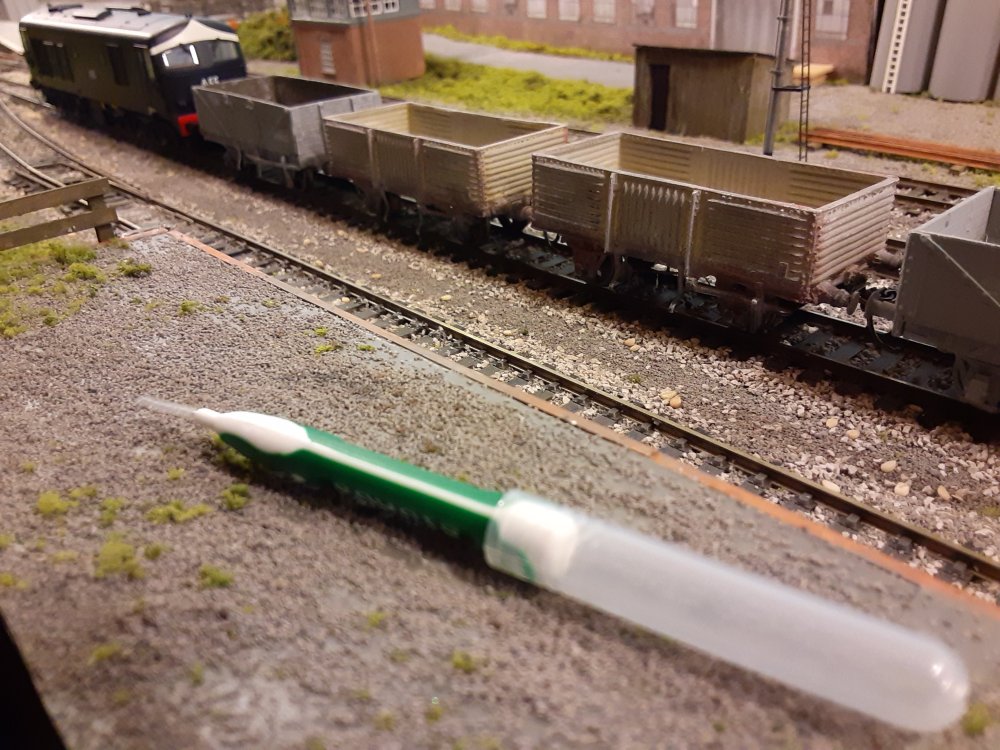 12. Thanks for the tip John. I picked up a pack of interdental brushes and am very pleased with the results. One issue I had with the tooth picks was them becoming jammed between the couplers occasionally causing derailments when trying to remove them. This was exasperated by the much lighter two axel irish stock compared to the much larger and heavier US outline models. This issue has now been eliminated. No need to adapt the brushes to fit on the end of a dowel as shown on the video. The protective cover fits on the end extending their length allowing plenty of room to clear the roof of any irish rolling stock.
