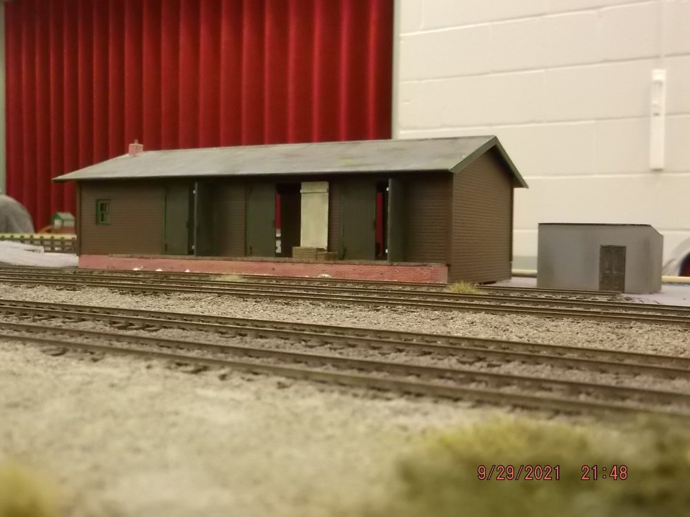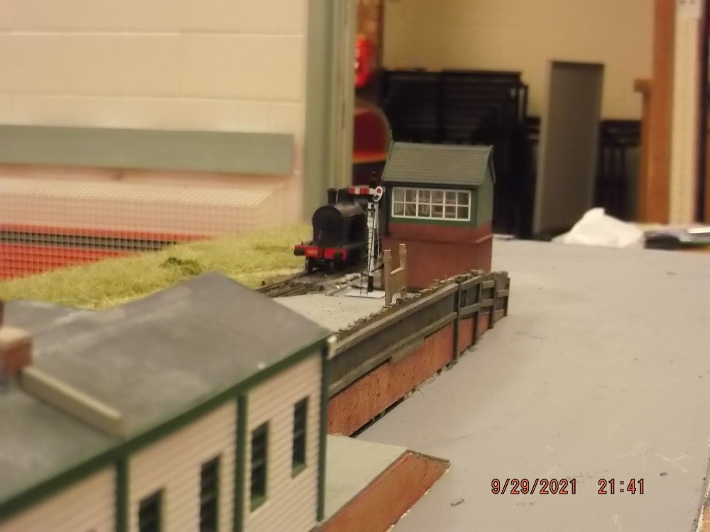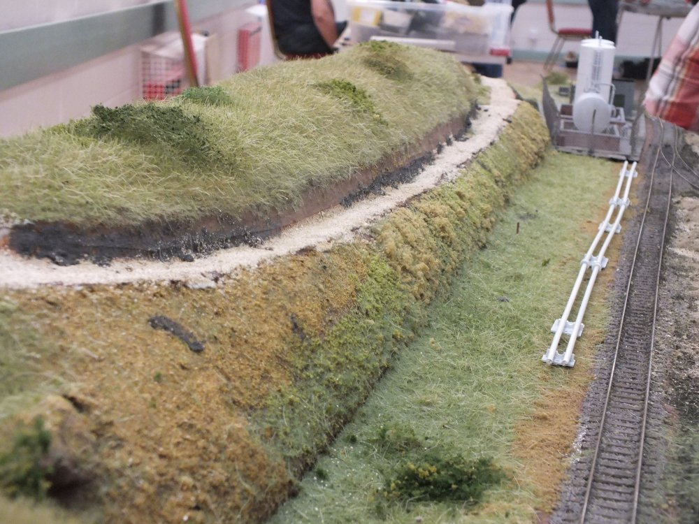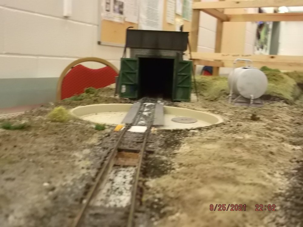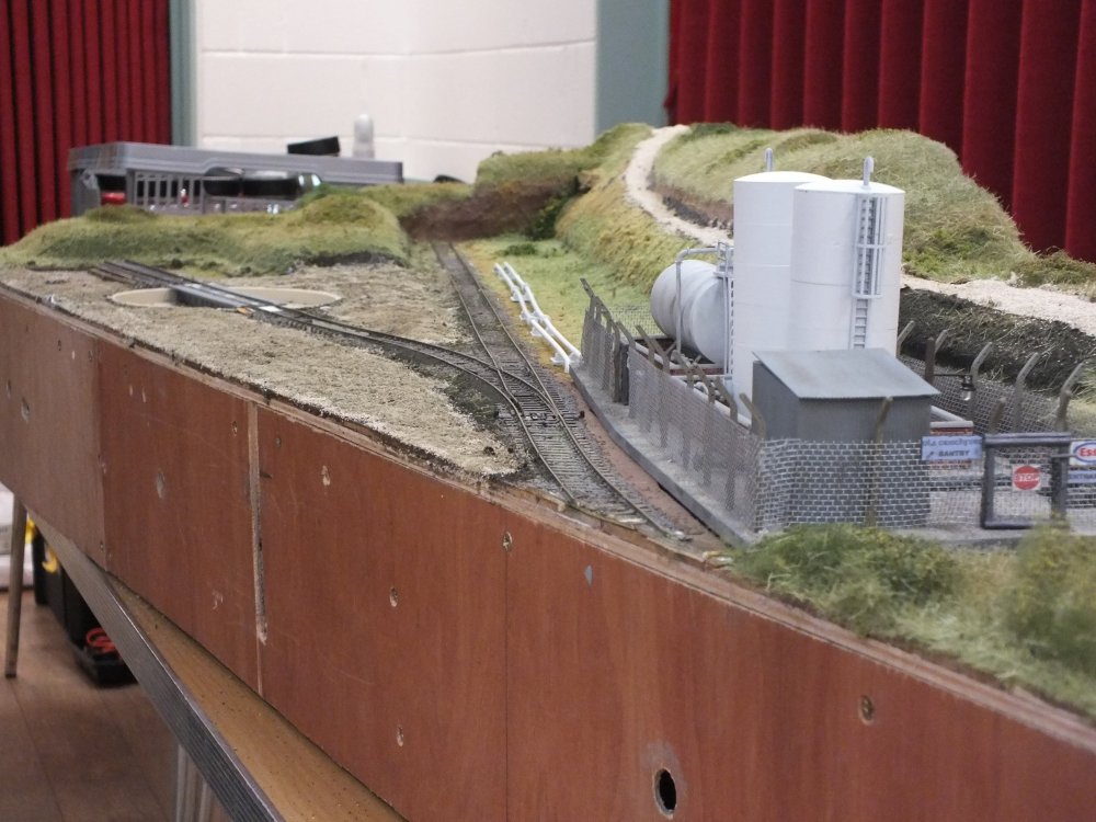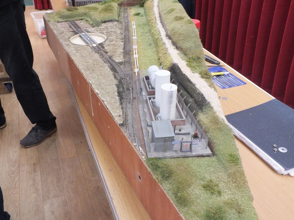 Have taken a couple more photos from last nights meeting. We have added the Engine Shed and Tank and blended them in with the scenery.