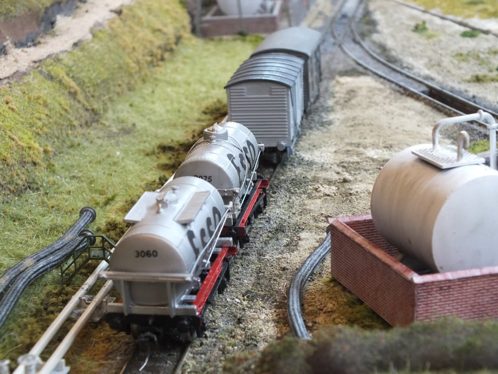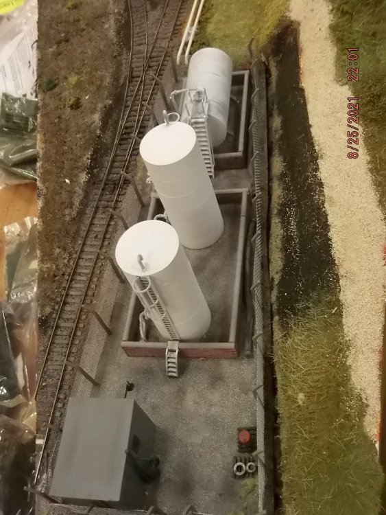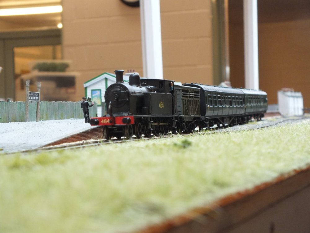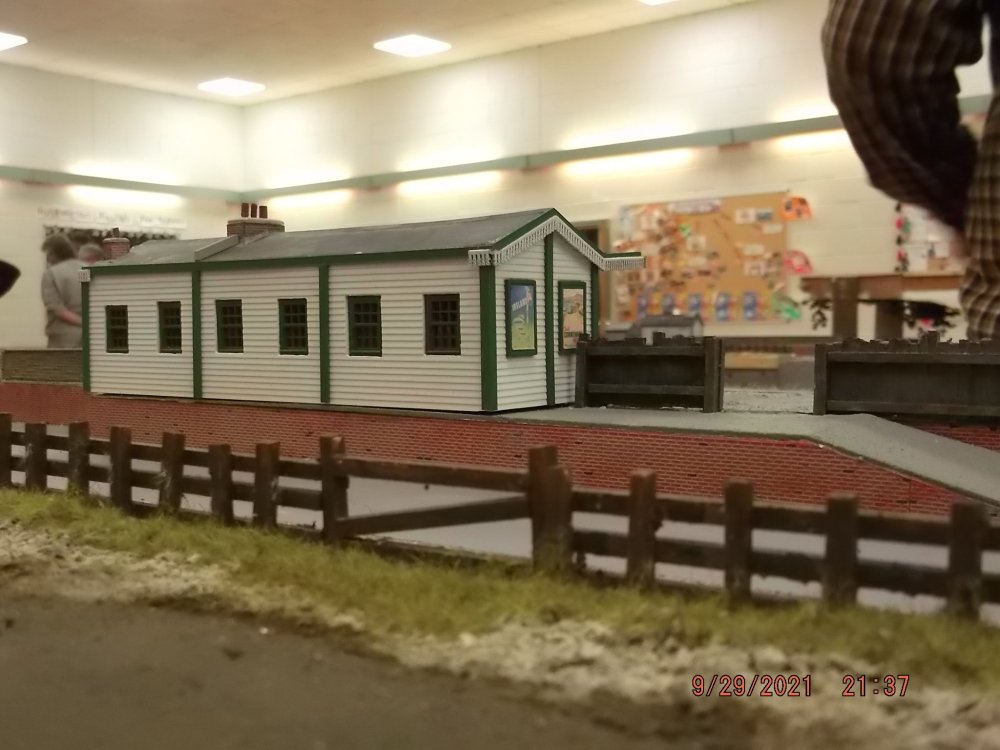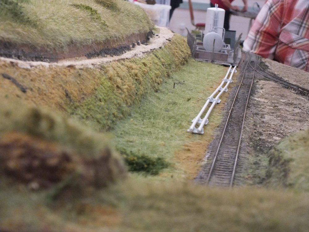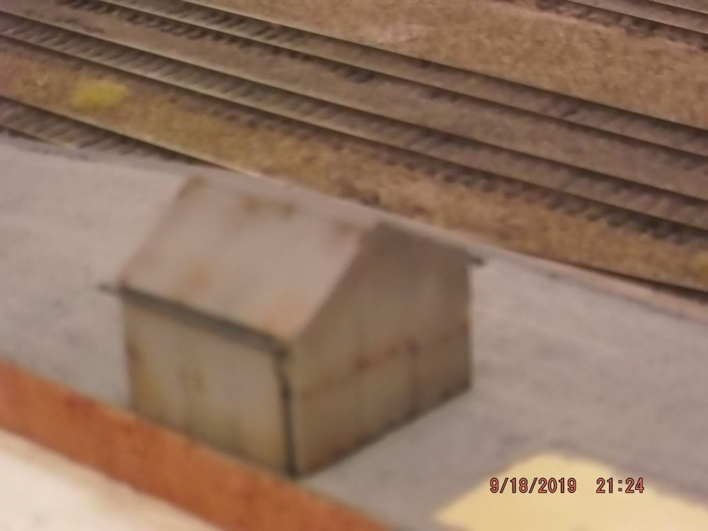 Have taken a couple more photos from last nights meeting. We have added the Engine Shed and Tank and blended them in with the scenery.