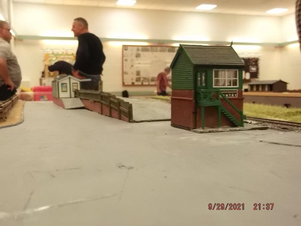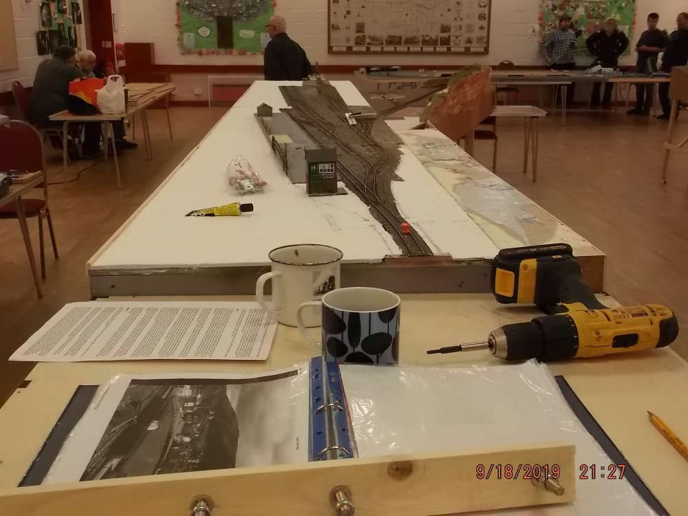 Long time no posts. Hope everybody is well. Here are a couple of photos taken last night at Sleaford Model Railway Club Night. This is the board that has had the most work done. Hopefully next week we will add all buildings on this and start on the other boards.