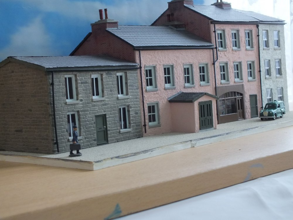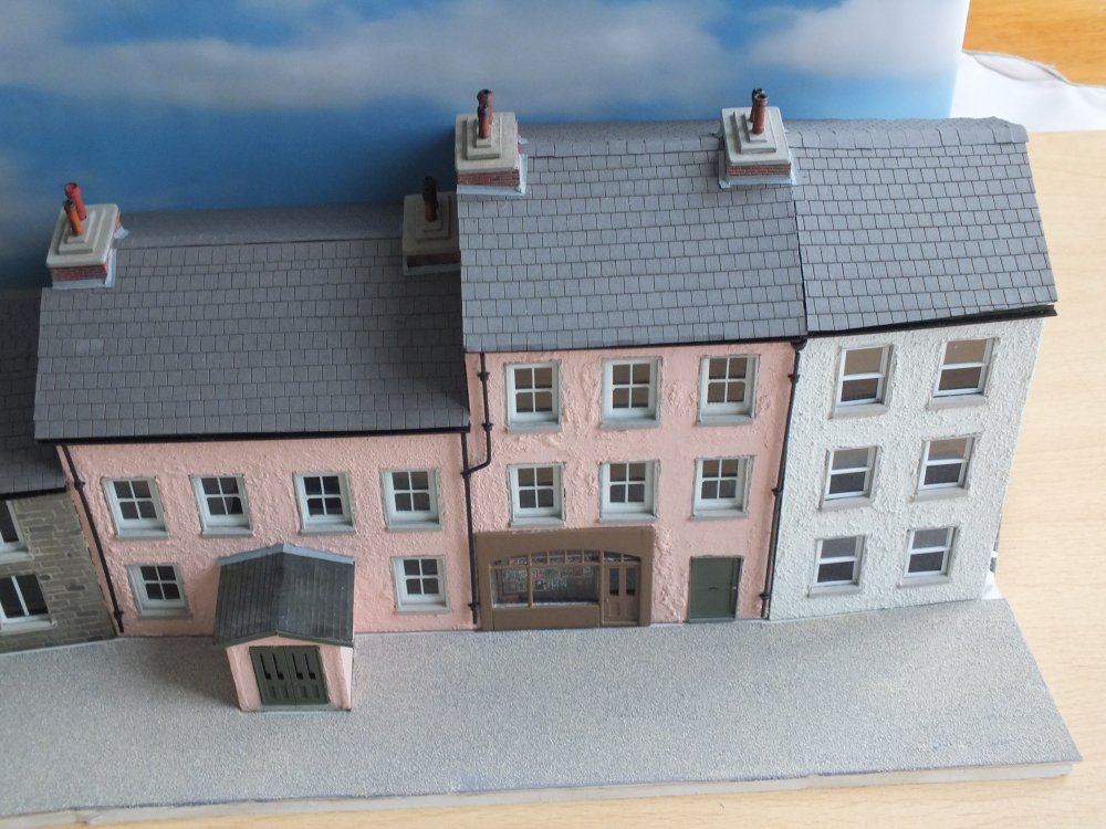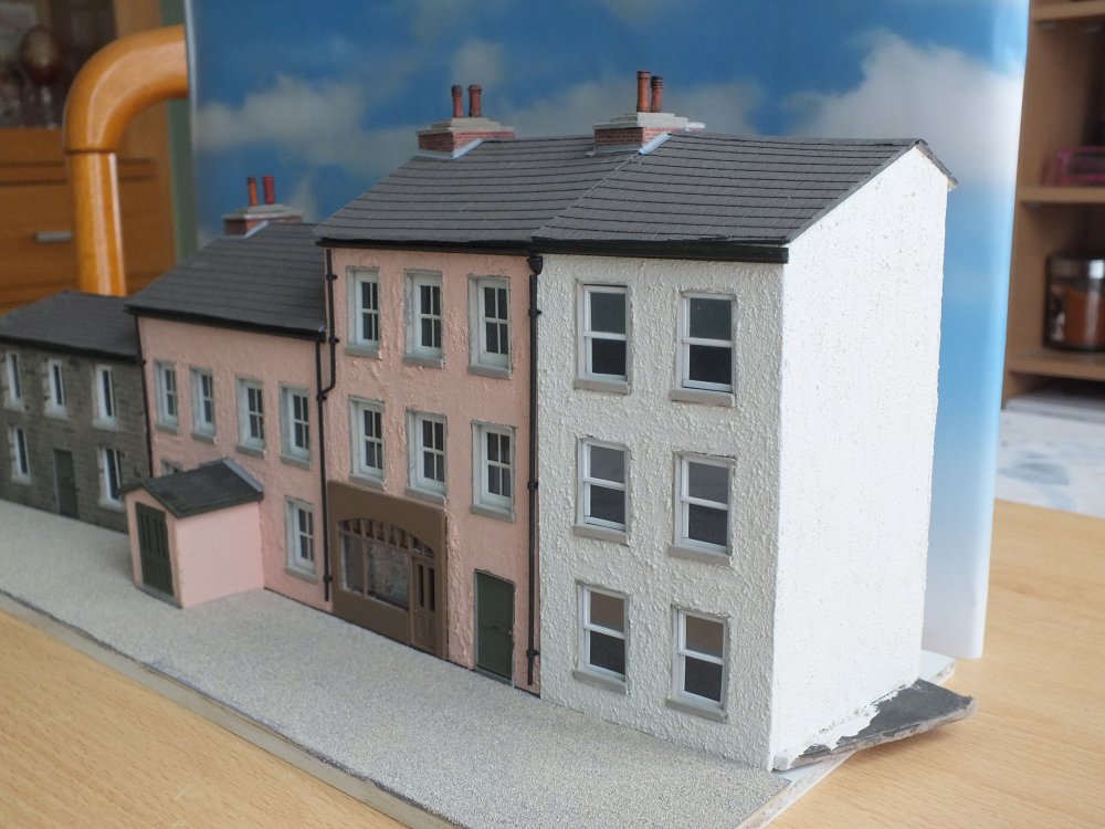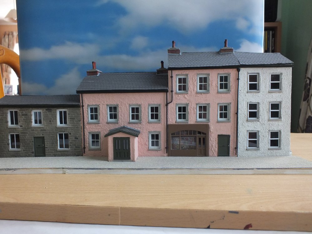 Long time no post but here we go. Pictures of our latest buildings on Bantry-complete apart from weathering and shop sign etc. These houses will hide the fiddleyard