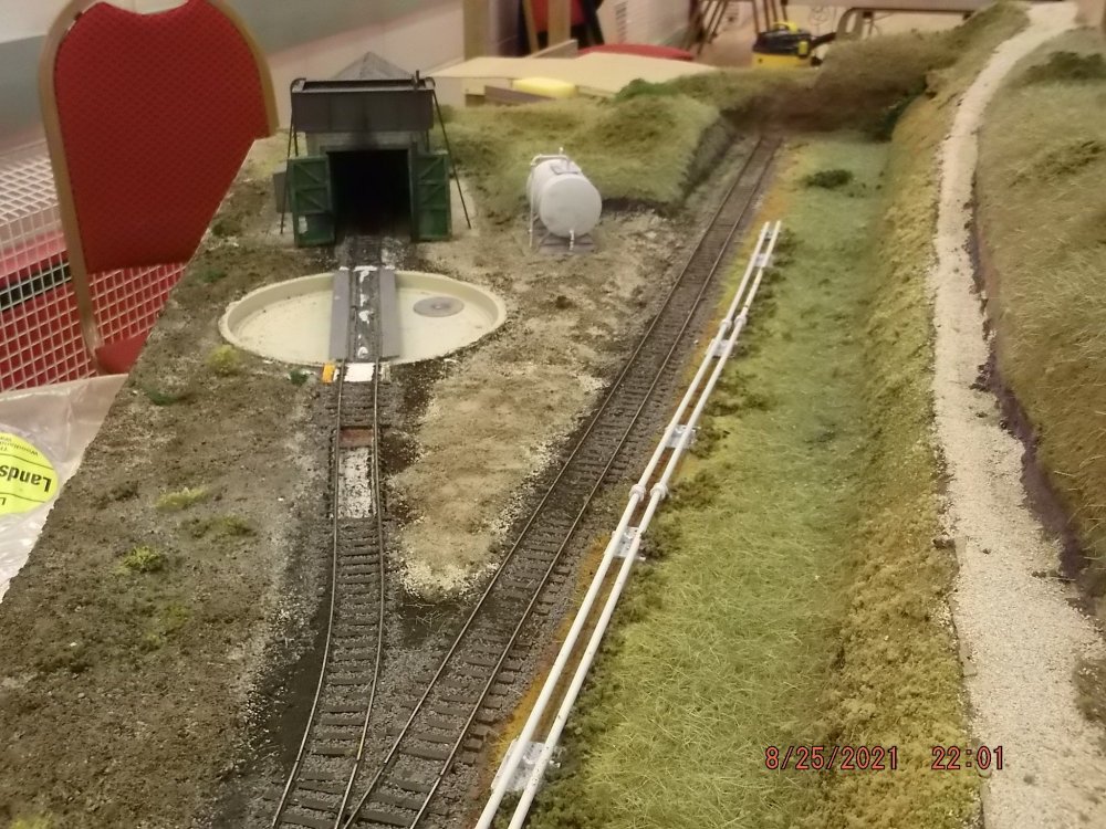 We have been busy adding Mod Roc and starting to sort more of the scenic side out on Bantry. We have had a lot of great help from Mike and Andrew Sharpe( Two club members) on the electrics Turntable has been tested and works!! Have attached a couple of recent pics.
