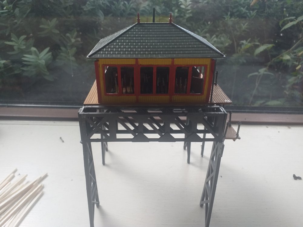 The shunter in daylight. A kitbash of old Airfix kits into a structure inspired by Waterford Cabin. Interior all set up for interior lighting lighting and ready for glazing.